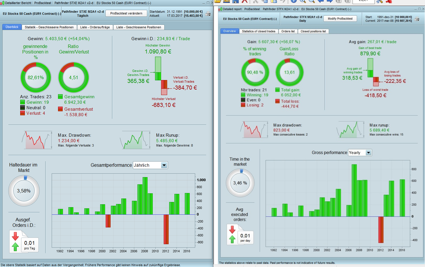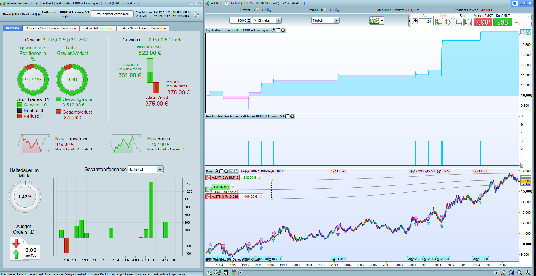 Starting with the algo for BUND. Gain is quite low for 879€ DD.