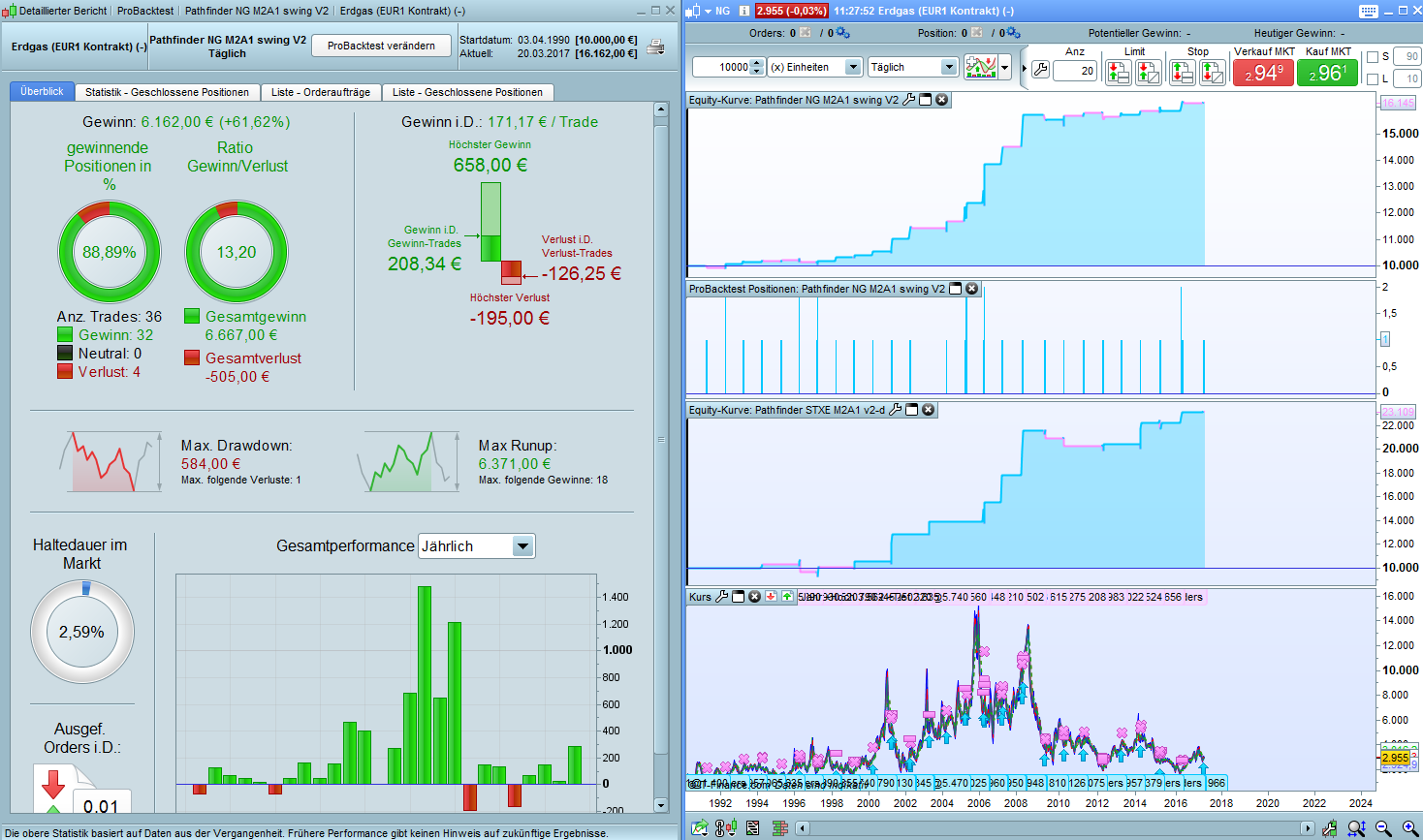 I just started the original algo “Pathfinder-NG M2A1 swing V2.itf” for trading with “Erdgas (EUR1 Kontrakt)”.