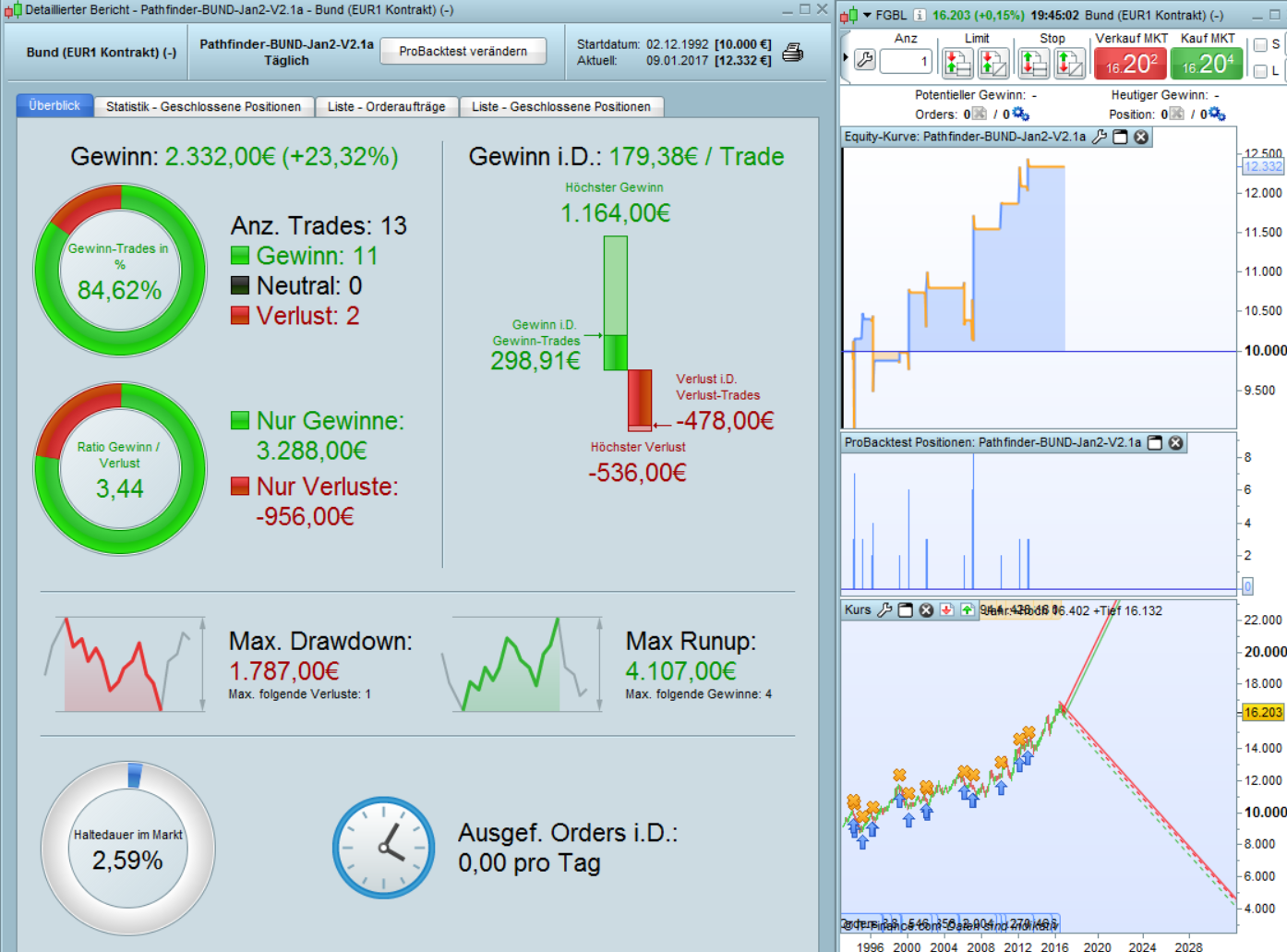 – can you run the program without errors? it should return an equity curve, with the tool-sign atop of the equity curve you can also open the “detailed report”