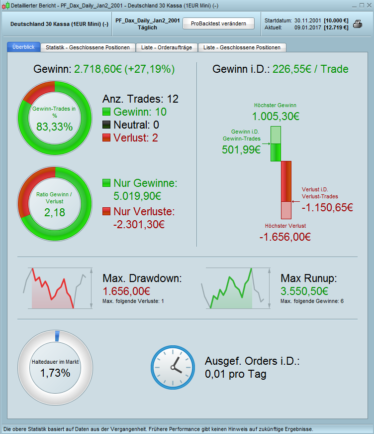– choose from the result list the value with the highest winning trades and check the drawdown/max. loss in the detailed window