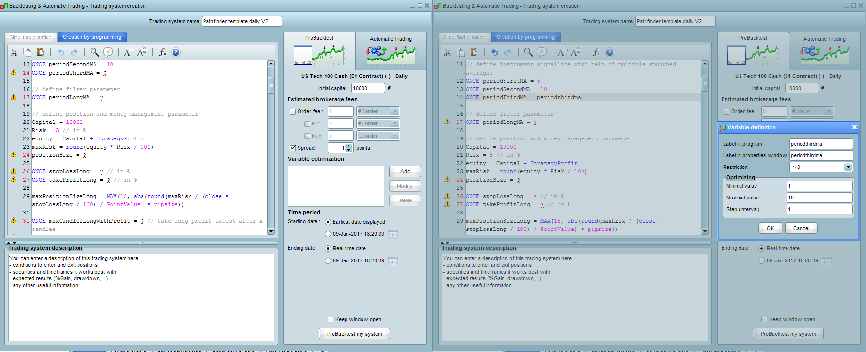 Then I change it to: ONCE periodlongMA = periodlongMA and add the variable.