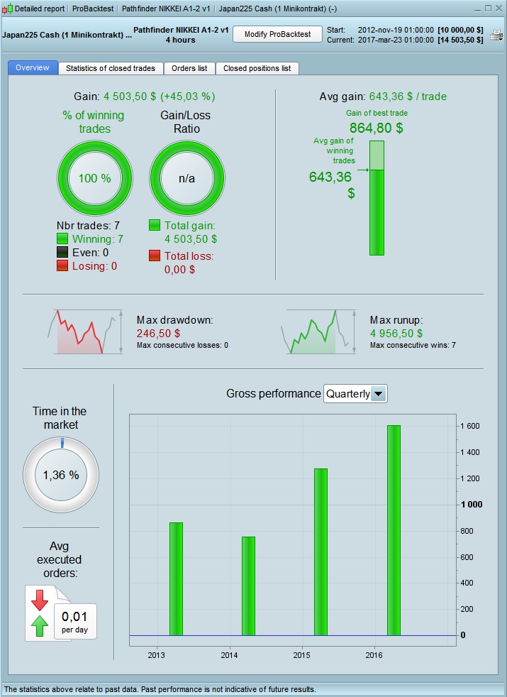 I see you used the Nikkei algo for the 4h timeframe. That is probably why you have only 7 trades and a backtest to 2012. But still looks very promising.