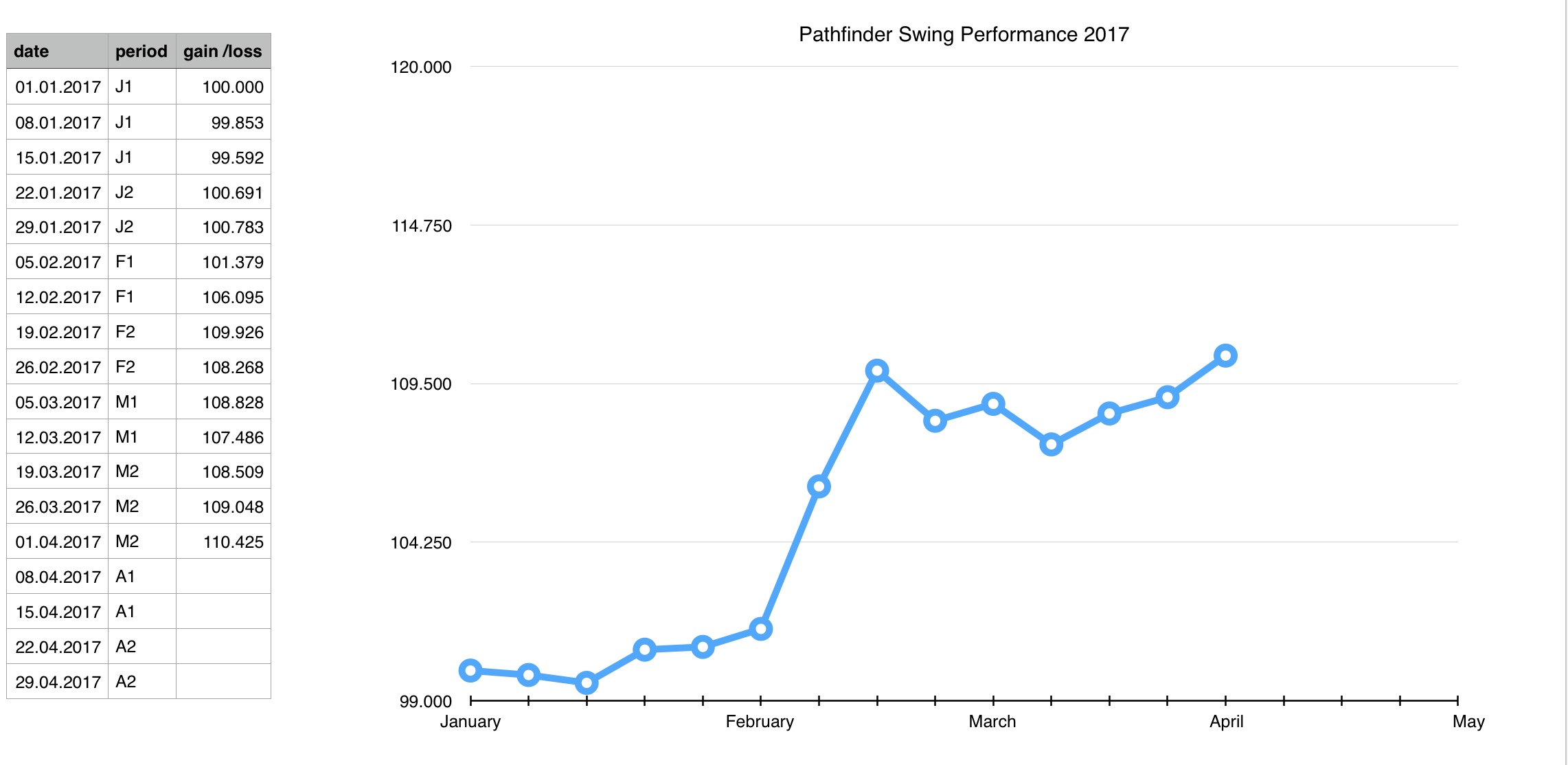 The first quarter is over and I wanted to inform you about the Pathfinder results so far. Please find attached the track record of all Pathfinder systems (seven 4H and all swing versions).