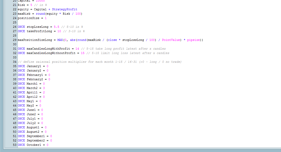 Regarding the US500. In the code you say positionsize 5. For April it says multiply 3, but the maximum positionsizelong=15. As i understand it correctly it can only take one time a position and not