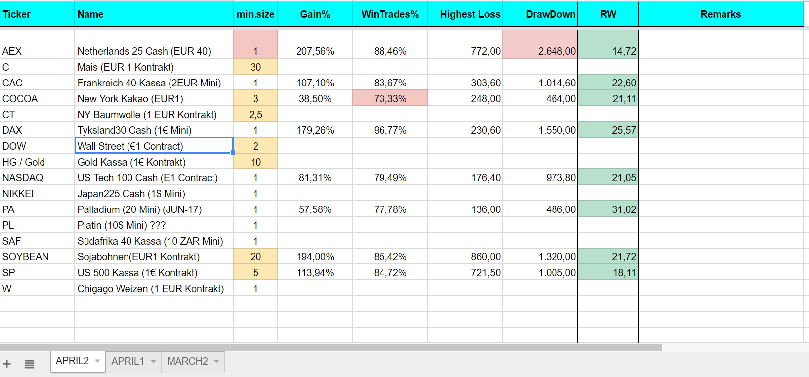 Wheat was already done, but with a contract that expires end of April. I would prefer to have a algo on the 1EUR instrument without a time limit, if we get reasonable results with it at all.