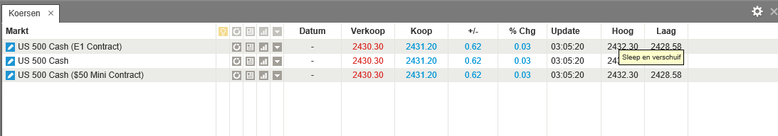 De reden dat platina op closings only staat is omdat we zijn overgestapt naar ‘spot platinum’. Dit is een spot contract en dus zonder expiratiedatum, overnight rente aanpassingen worden gemaakt om de positie open te laten. Momenteel is de overnightrente een kost van 0.04 per punt bij shorts en een kost van 0.1 per punt bij long posities.