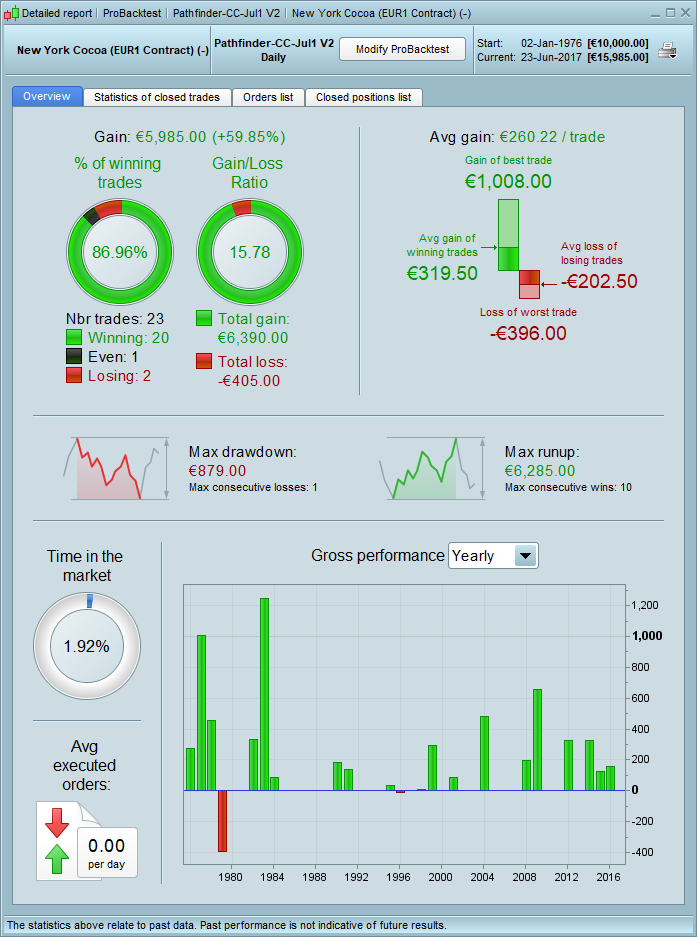 You should not just look at one BT with just 8 trades in 30 year. It is the whole picture. A roadmap of 30+ instruments for 2 times a month a different optimization for both