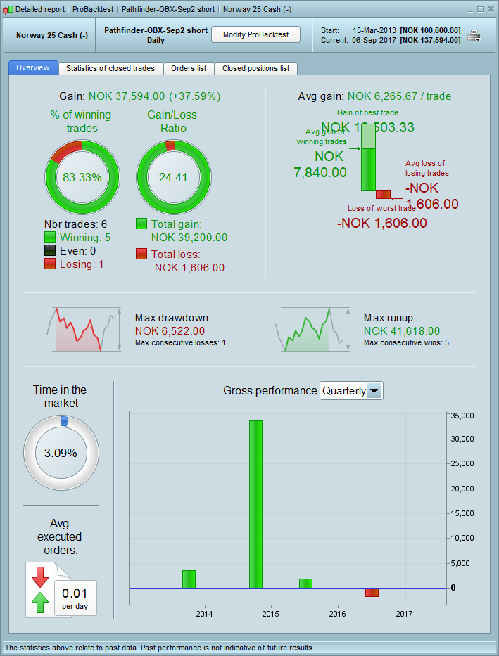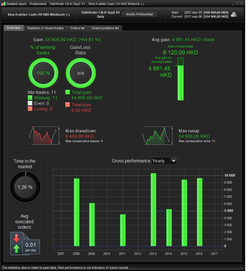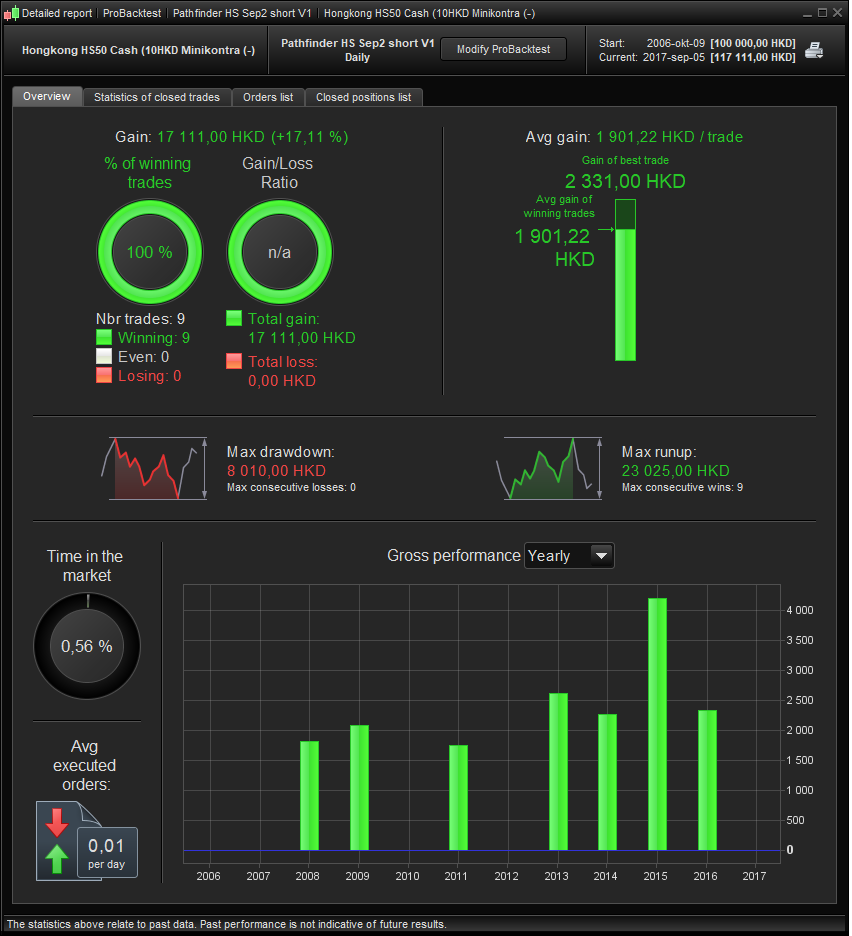 HS short – This one behaved strange… Best results with takeprofit=1, and changing the “maxcandles” didn’t do any difference. Acc can be turned on, higher DD, better result.