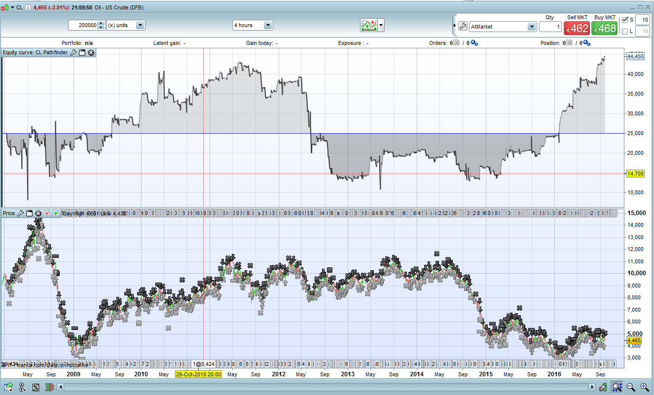 The consideration of seasonal patterns have improved my trading results significantly. Especially for commodities they are very helpful. On the webpage http://www.equityclock.com you will find excellent information about this topic. I have created a first Pathfinder version for crude oil based on the historic backtest results of saisonal patterns http://charts.equityclock.com/crude-oil-futures-cl-seasonal-chart. Unfortunately IG PRT has only a very limited data history and maybe someone with longer history is able to check the reliability of the results.