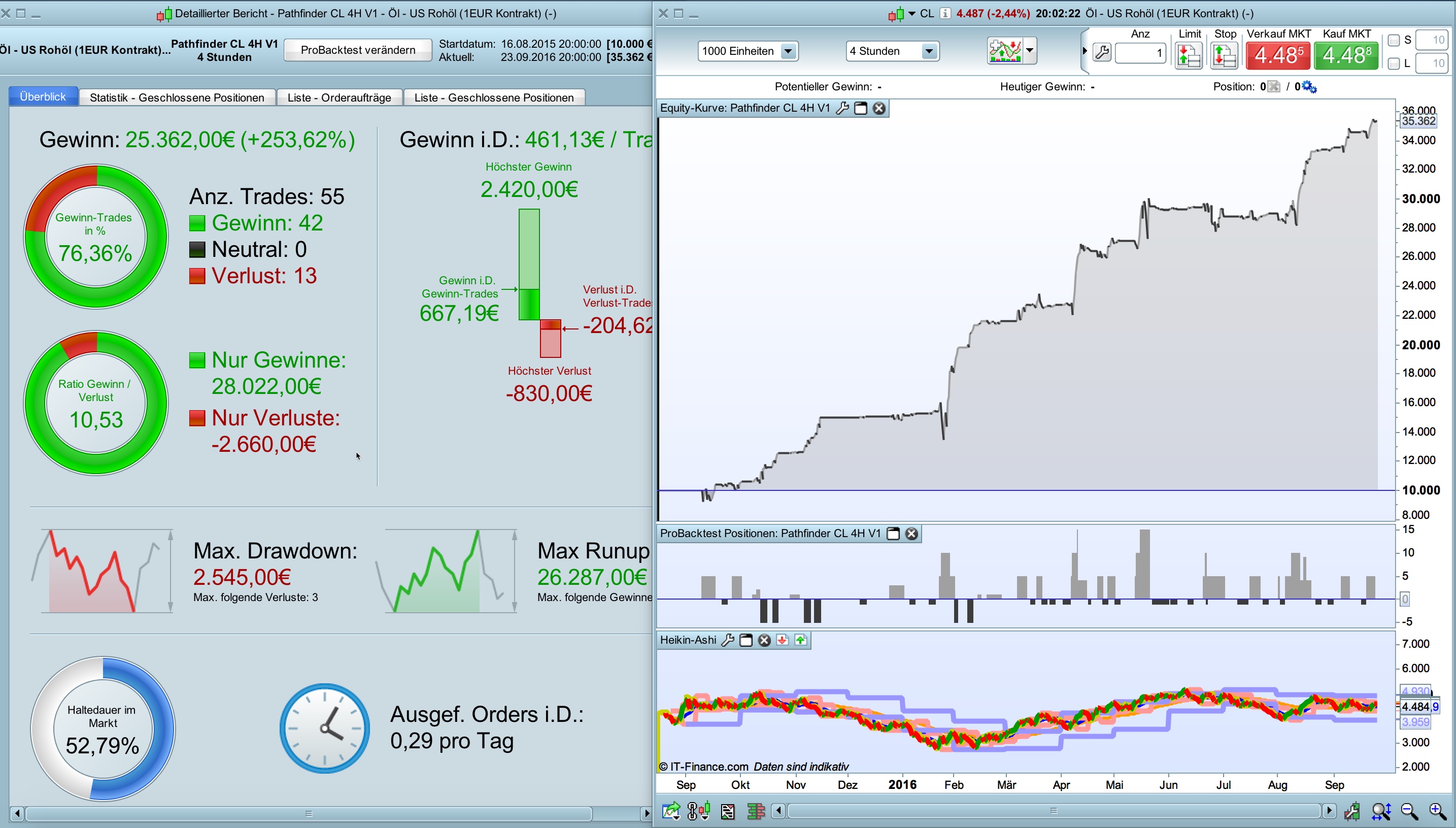 // Instrument: CL mini 4H, 7-23 CET, 3 points spread, account size 10.000 Euro