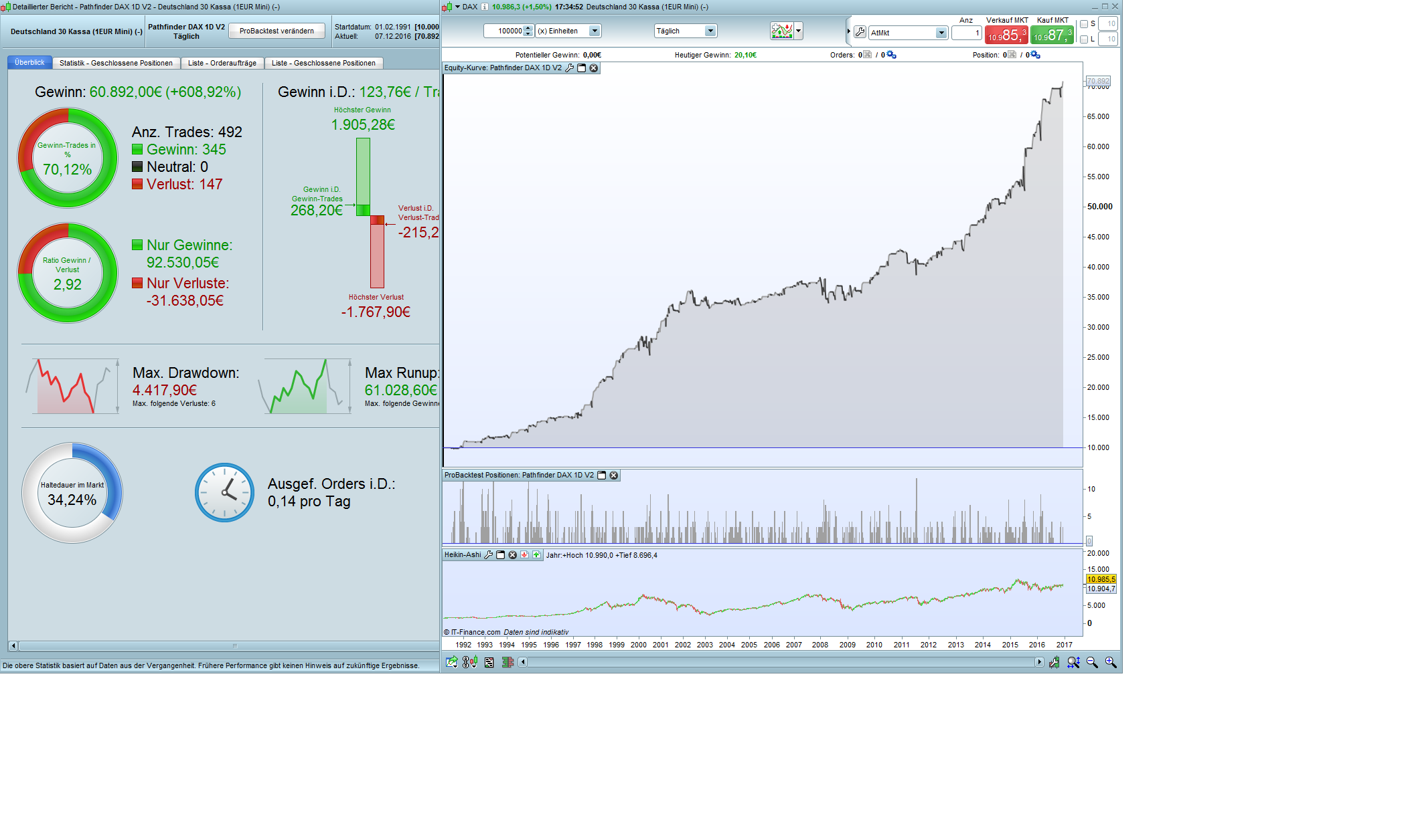 Thanks for your post and welcome. There is no further documentation available. All information you’ll find here in this forum. You can use Pathfinder as it is, the parameters of the last versions V6B2 or V6 are up to date. Please verify wether the position size fit to your account size. For the DAX I recommend 10k Euro or with less money please reduce the saisonal multiplier (e.g. for December from 3 to 1).