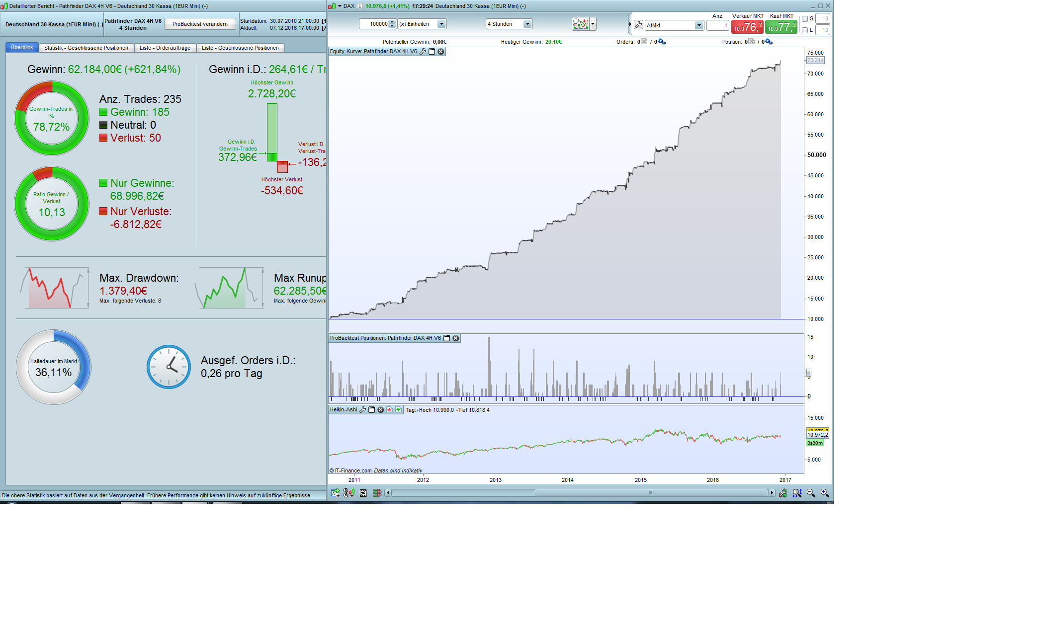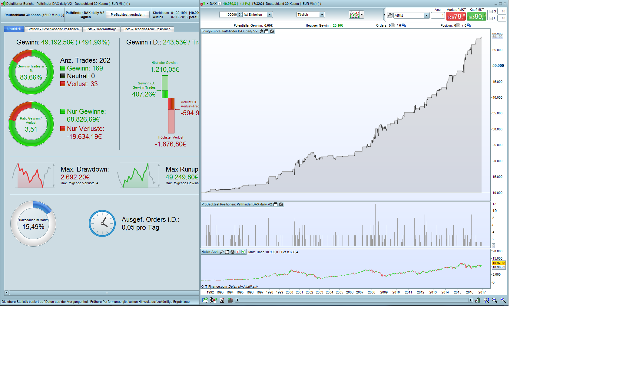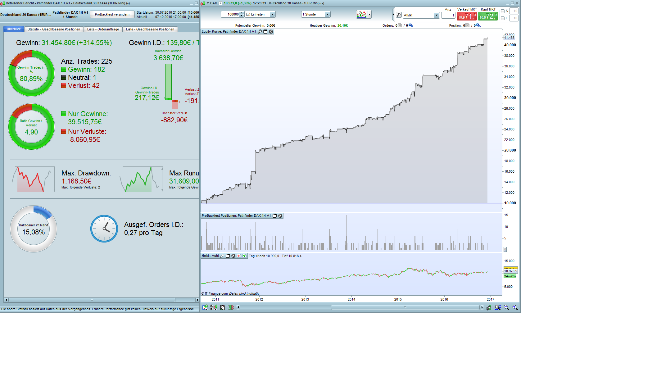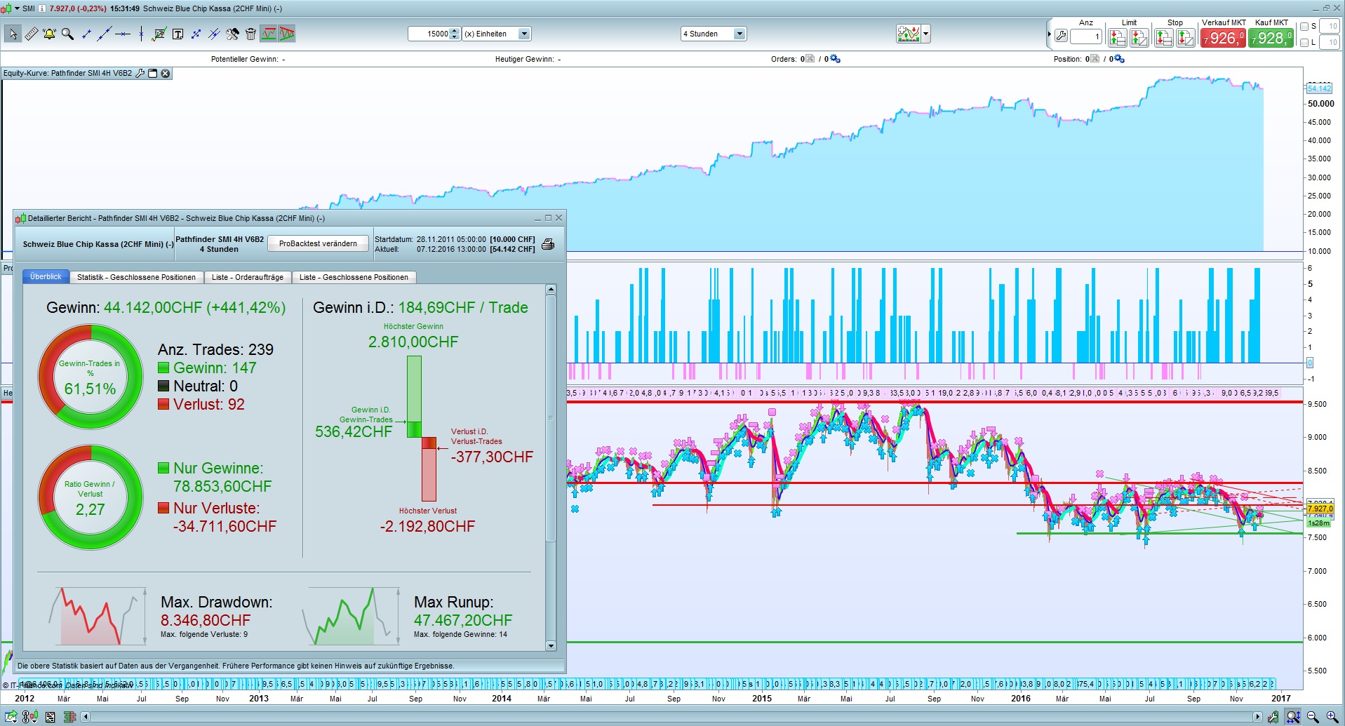 Here is the idea to milk the Swiss cows. Pathfinder also makes a profit at the SMI every year, but the profit trades are only 61% and the drowdown is unfortunately too high. Maybe someone has a suggestion for improvement.