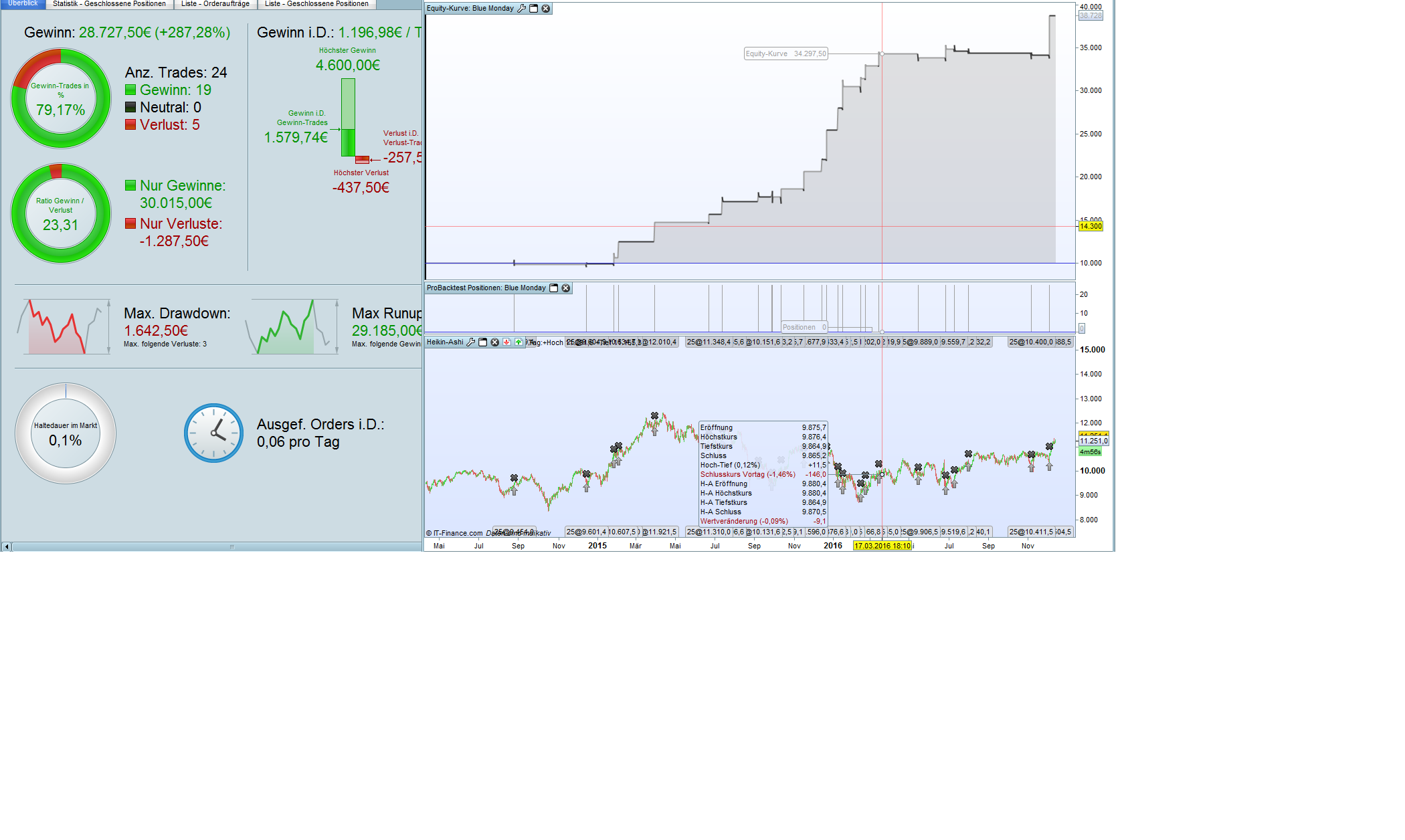 What I can see is that the input signal was done because signalline crossed down the daily low, but I think that this is not the real daily low of the previous trading day, as you explained somewhere months ago. As everybody knows, DAX (CFD on IG Markets) closes on Friday night and opens again on Monday morning, but this Monday morning starts on 00:00 hours, which also means 12:00 PM of Sunday.