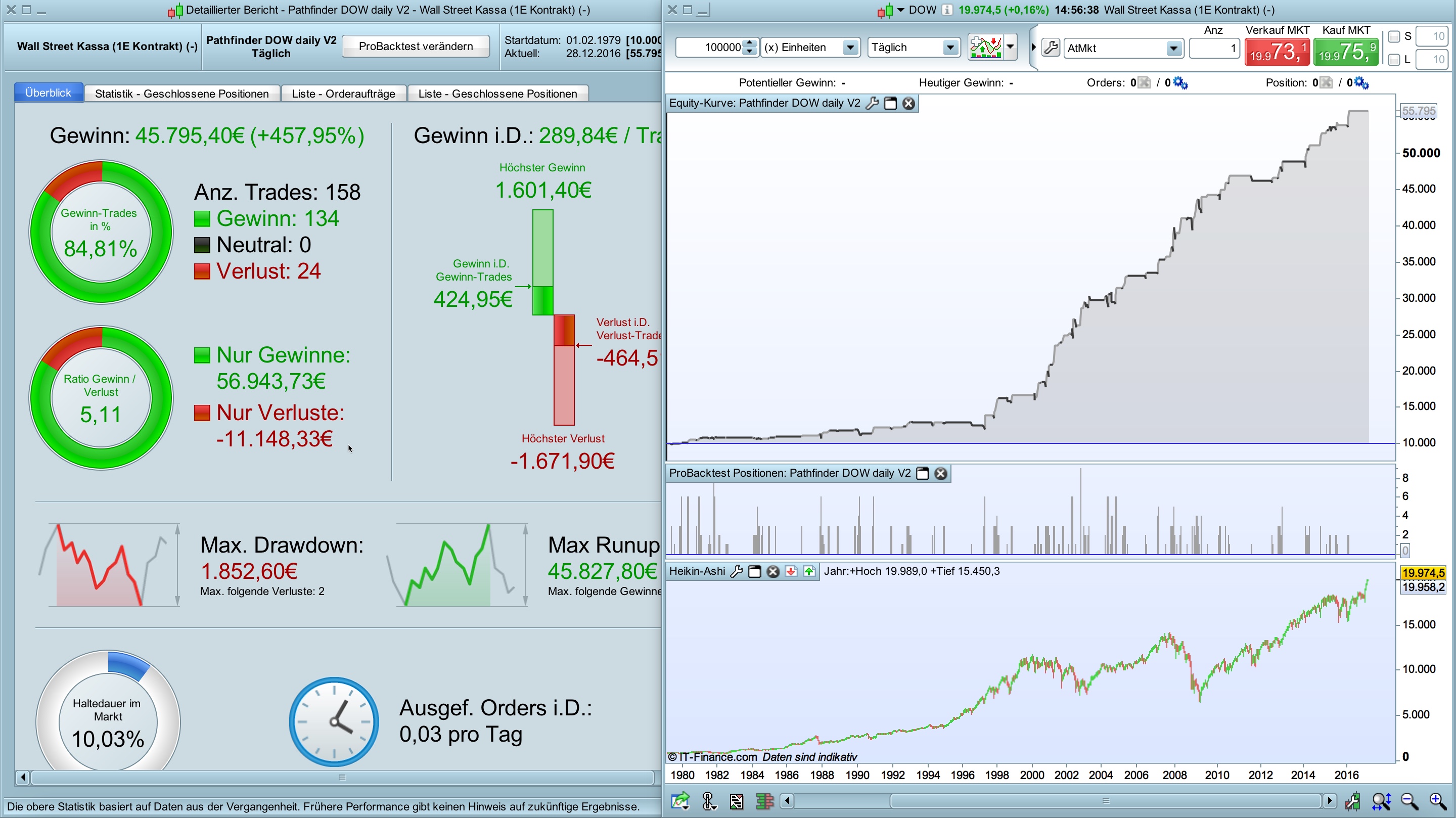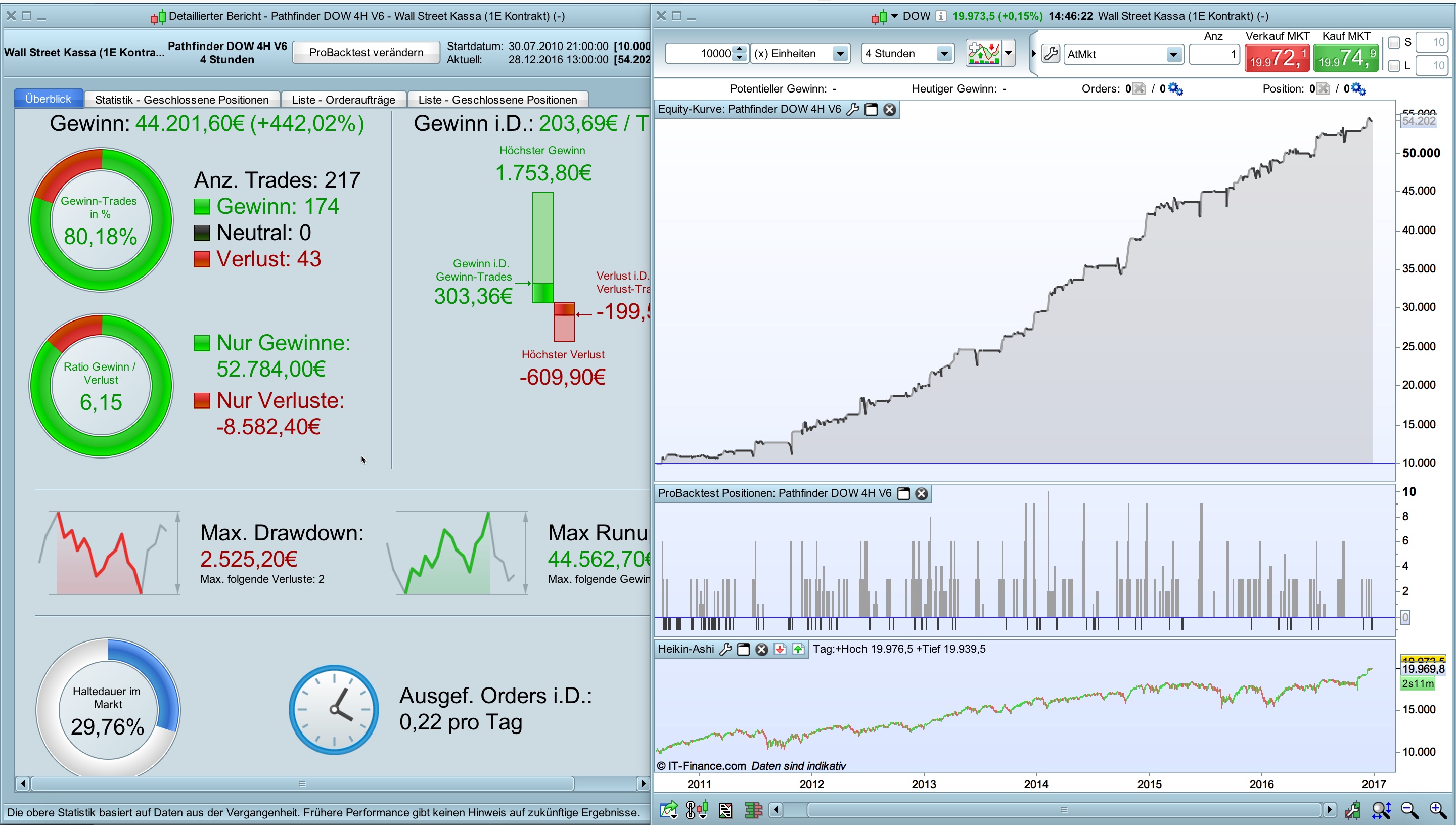 all Pathfinder 4H systems require 24 hours quoting (6 candles per day). For the DOW these feature is available since April 2010. Backtests before this date doesn’t work with the default parameter setup.
