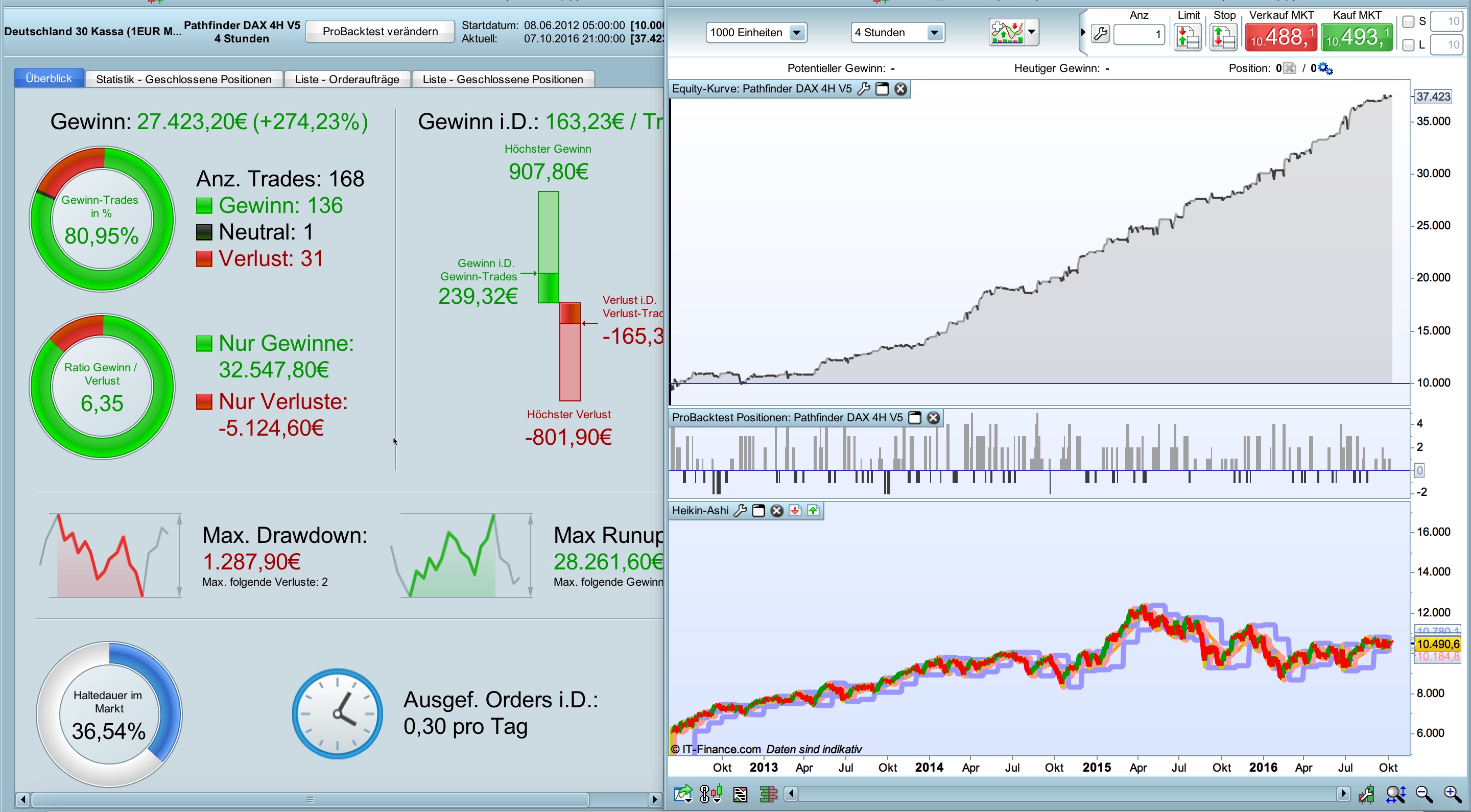 // Instrument: DAX mini 4H, 8-22 CET, 2 points spread, account size 10.000 Euro