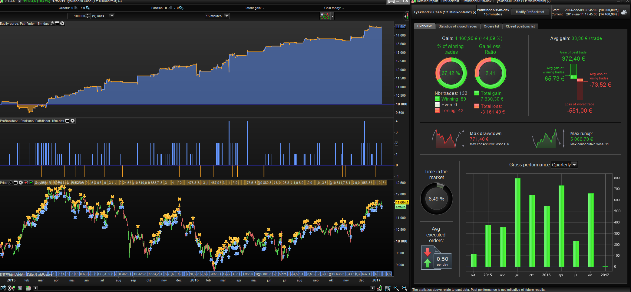 Is anybody running PathFinder-FTSE-4H-V1? I have it on demo account. It’s long with 3 contracts since Jan 3rd, but they don’t show in the Probacktest position window (the histogram). Strange thing is that they appear in my position manager.