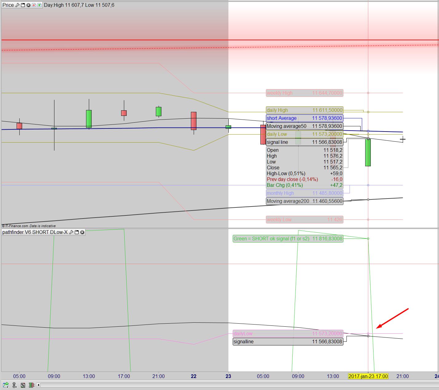 Strange behaviour- signal line crossed under daily low between 13:00 and 17:00 so the short signal is good. However why it opened at 21:00 I don’t know. Also it didn’t open any short for me- though the signal line is 11566 and daily low is 11573 @17:00. I have no rejected or cancelled order in DAX trying to make a short position. If back tested DAX 4H V6 there is also no opening in short signal @17:00 or 21:00