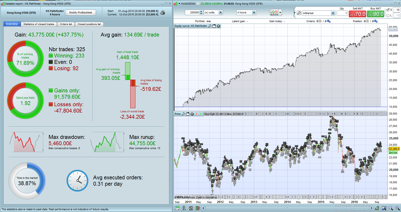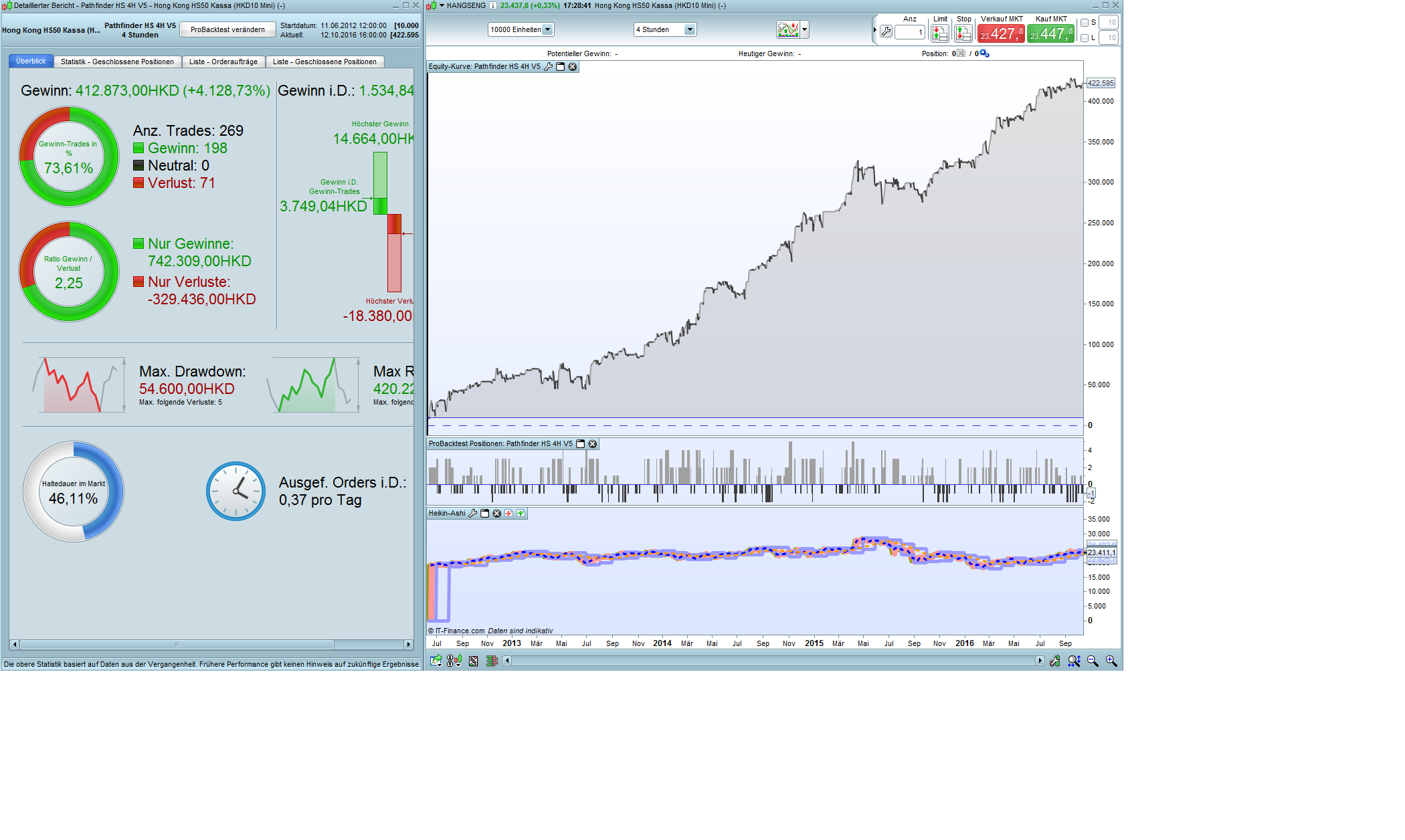 @miguel: as mentioned above the topic isn’t to develop a fancy Hang Seng backtest, the aim is to improve the results under “stormy” conditions. Hang Seng had a wild ride over the last 3 -4 years and is perfect to hardening Pathfinders behavior esspecially in tough downtrends.