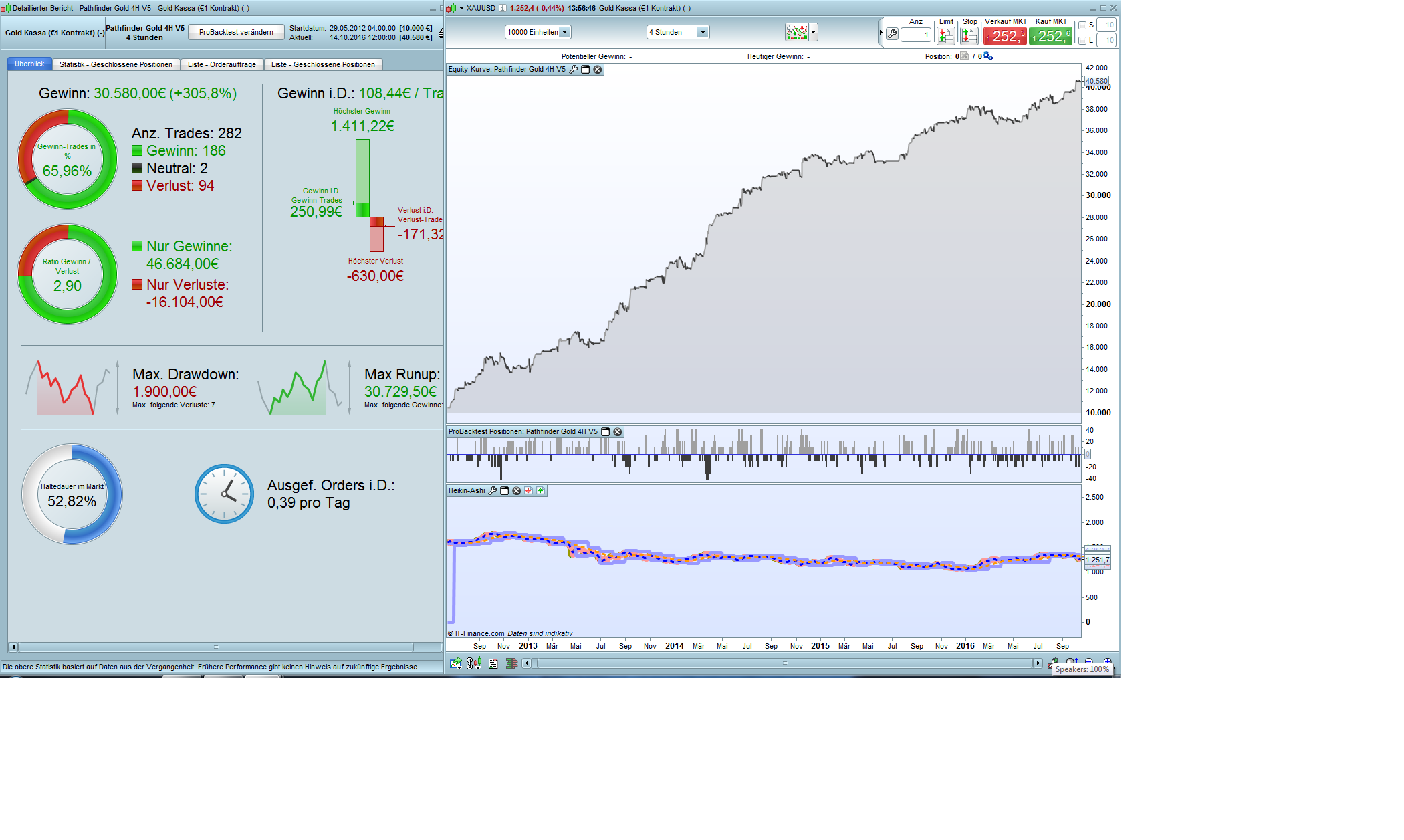 // Instrument: Gold mini 4H, 2-22 CET, 0.3 points spread, account size 10.000 Euro