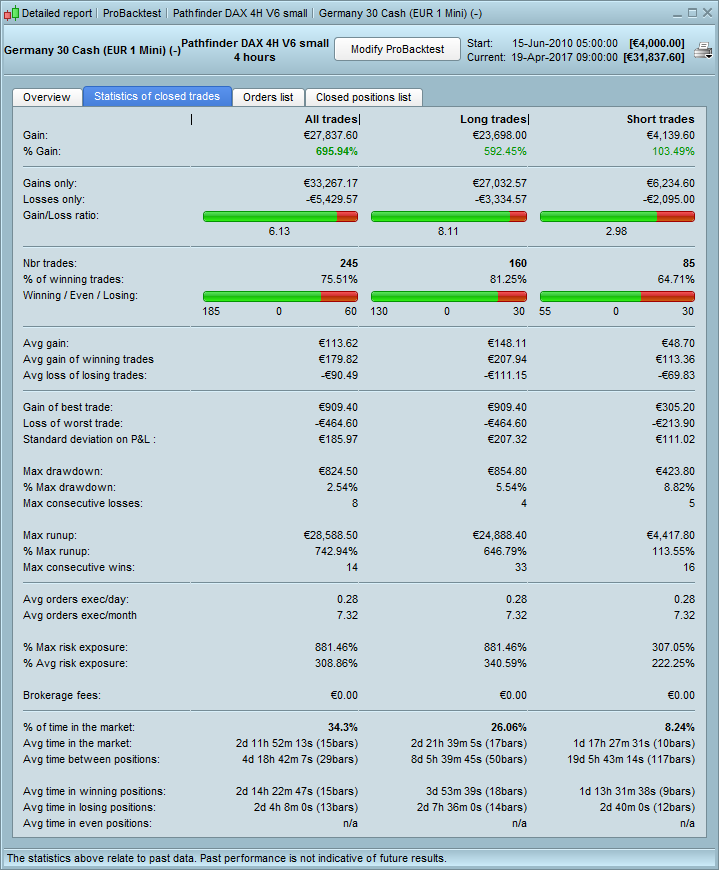 Thanks for the answer wp01. Will try for some time on demoaccount, then maybe start with dax 4h if it goes well 🙂 Backtesting it works with 1000 eu but I guess it’s safer to have more if the first trades fails.