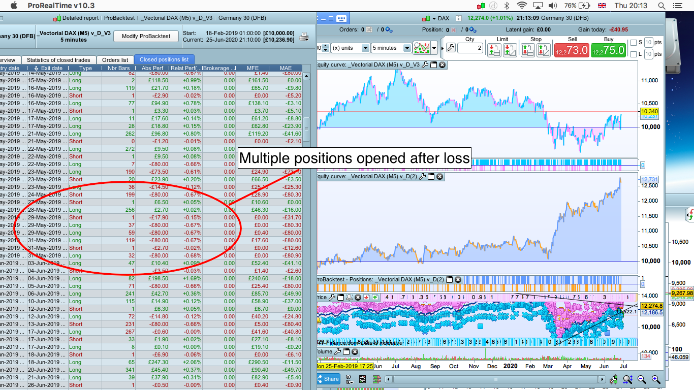 I made an attempt at inserting the code but it is not performing as expected still multiple losses on same day. D2 is the original equity curve before code was inserted please take a look at the code thanks.