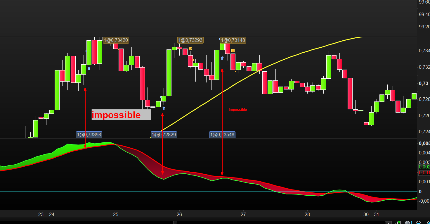 En effet, quand je programme un croisement à la hausse avec sa ligne due signal (attention pas la zéro line) pour passer à l’achat
