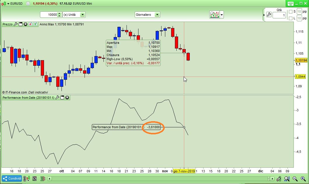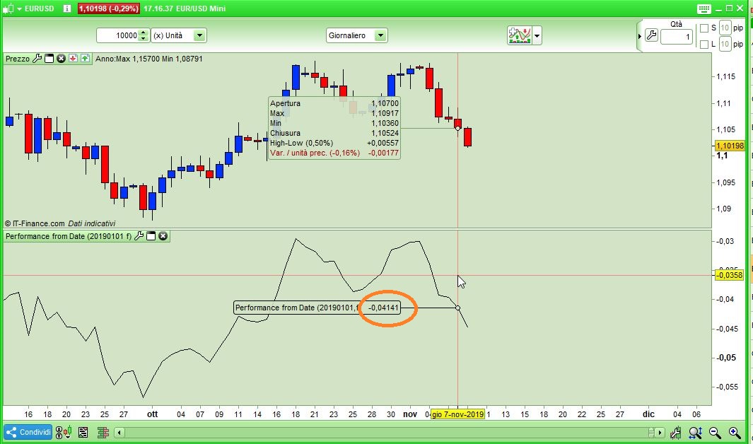 come da titolo vorrei realizzare un’oscillatore che restituisca la performance di uno strumento a partire da una data scelta fino alla chiusura odierna.