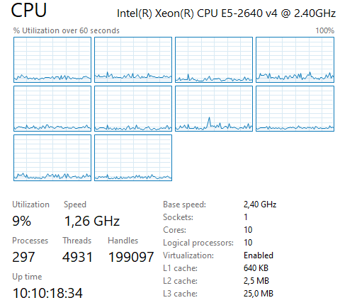 Hmm … I can’t be 100% sure, but I can’t load two instances at the same time because the one will kill the other at the moment no first chart is visible of a first launched instance. However, an IB instance is completely separate from an IG instance, and those load perfectly together without any notice that one holds up the other. I should add that I have a processor which should up up to the task. What you see below is with two PRT-IB instances and a total of 40 or so charts on-screen. Notice, however, that this is mostly pre-market (ETH) USA (regardless of charts regular hours imply way more cpu usage because of refreshing lists enormously more).