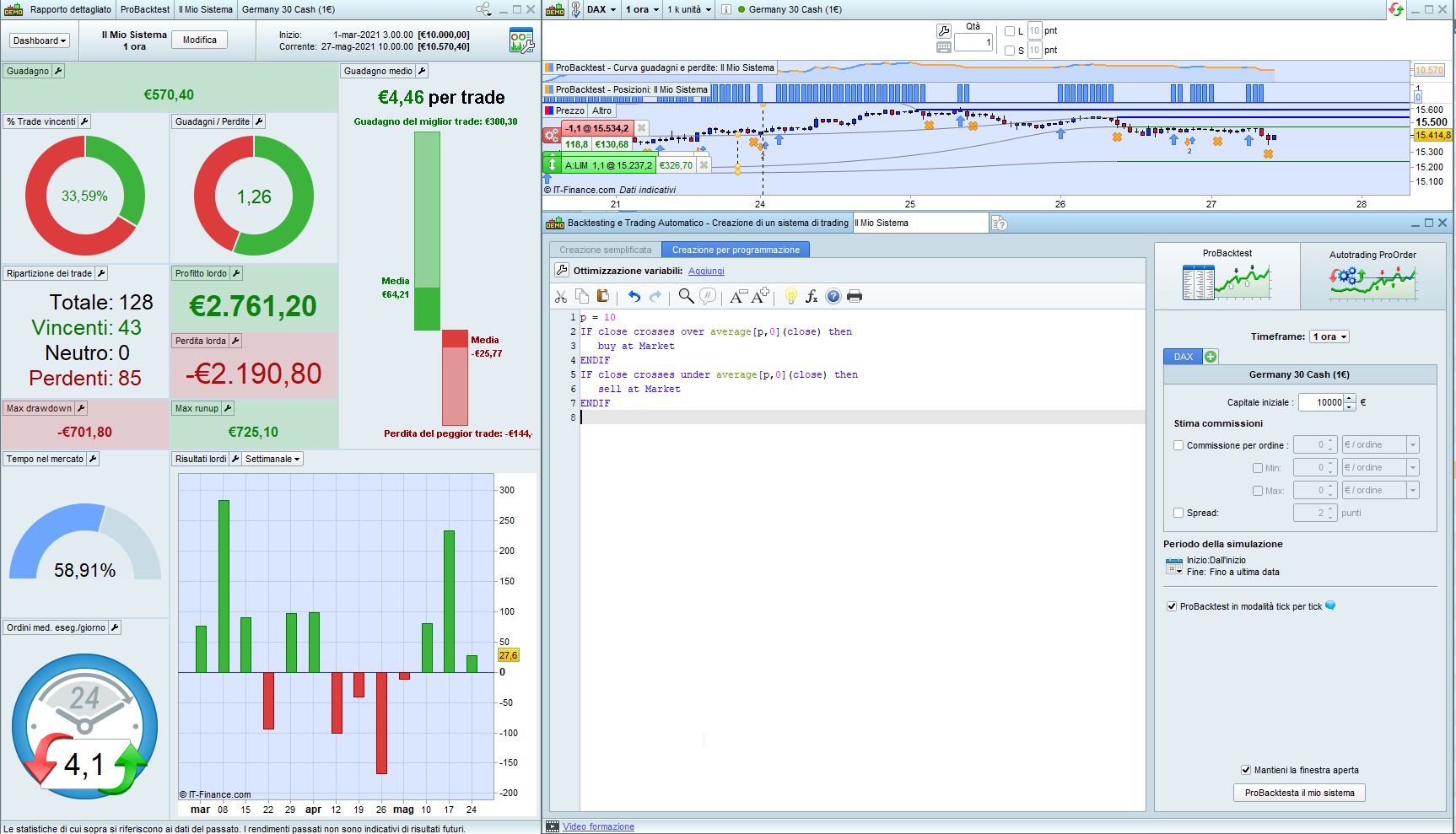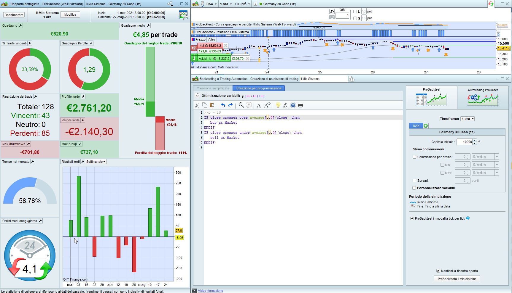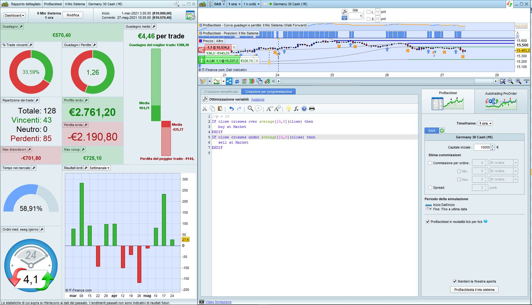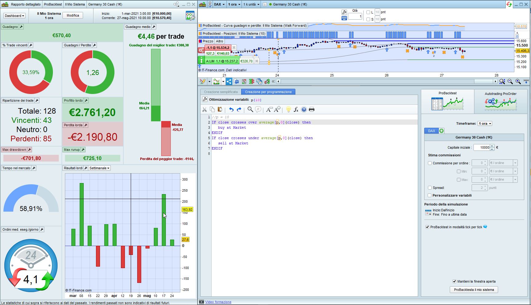 Questo è il codice, lo uso sul Nasdaq giornaliero con 200 unita. Per la variabile, lo leggi nel codice, comunque è 34 euro e l’ho individuato con Walk Forward.