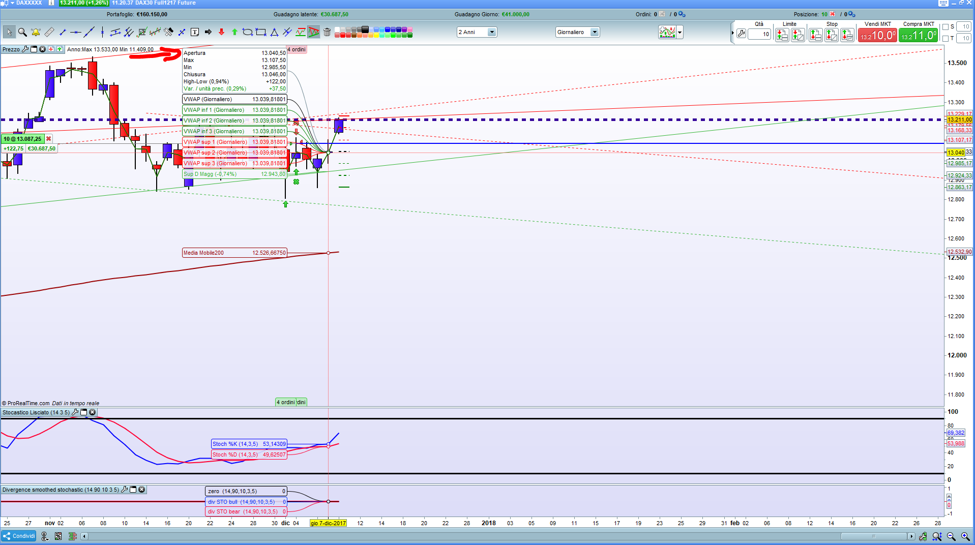 Allego screenshot DAX future con valori ed indicatore modificato
