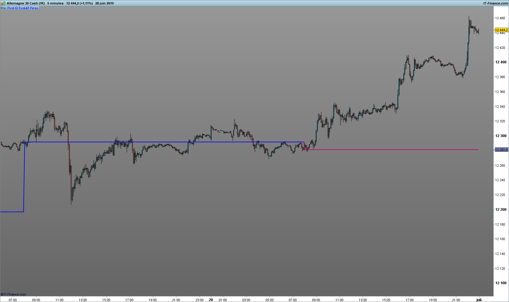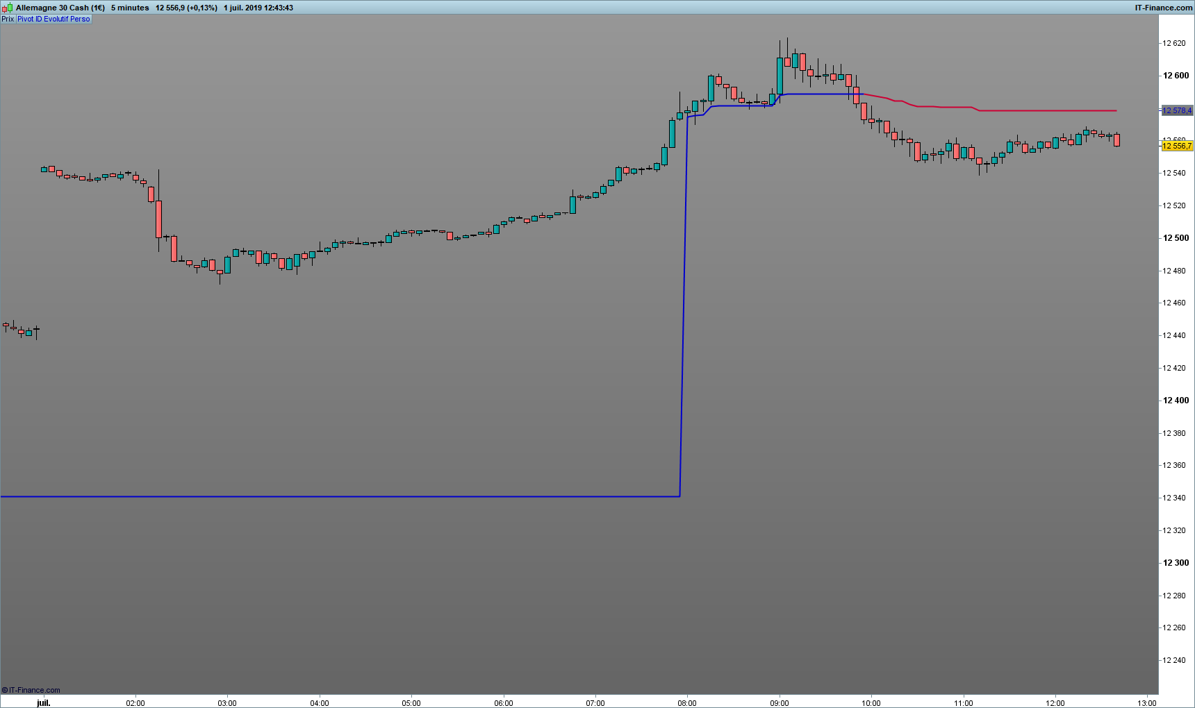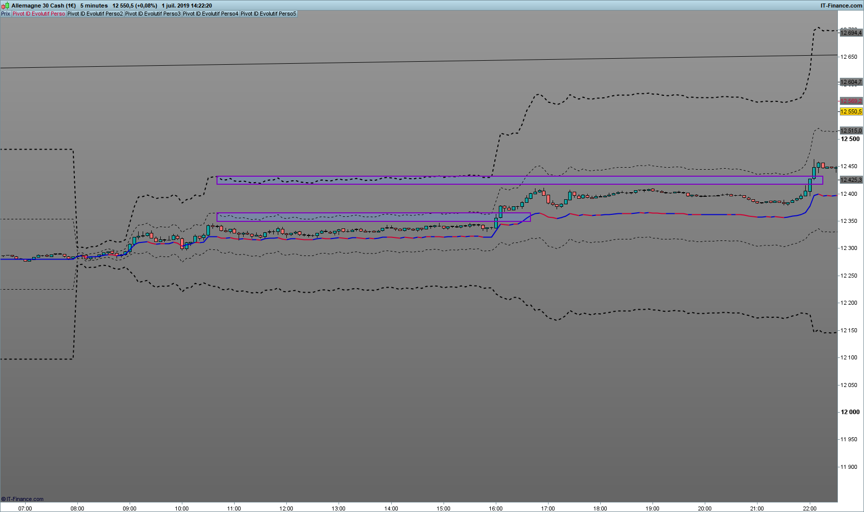 Le principe est que le Point Pivot soit calculé à chaque close de bougie en prenant en compte le plus haut et le plus bas depuis le Point de départ du jour (0800am).