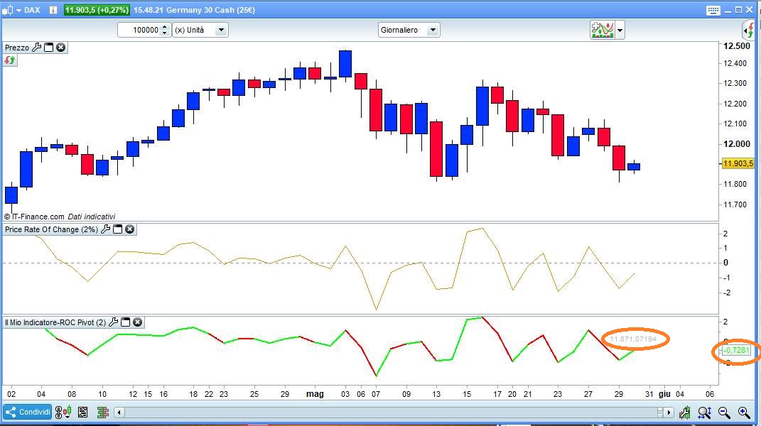 L’avevo dimenticato. Il ROC te lo mostra l’indicatore sulla destra, io ho aggiunto sopra/sotto la linea il valore del Pivot: