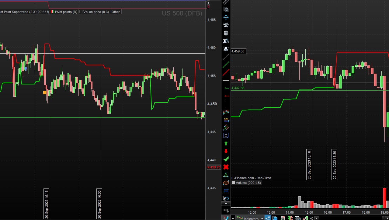 Looking at 2 minute chart both white lines (PRC PPS) went UNDER the price at 21:00 (26/09/2023) but on 10 minute chart PRC PPS changed folowing day 27/09/2023 at 08:00.