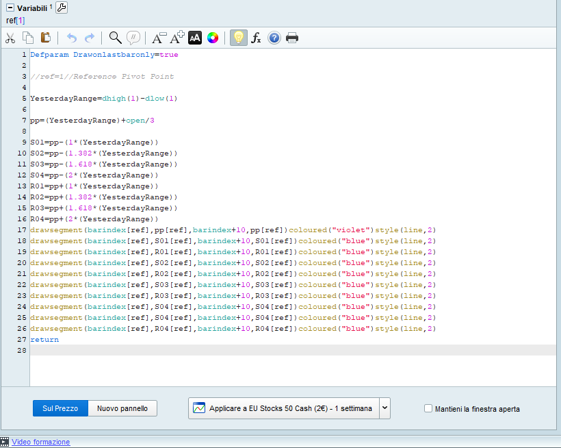 Buonasera…vorrei creare dei Pivot Points(ma non so scriverne la formula in ProBuilder) calcolati in questo modo: