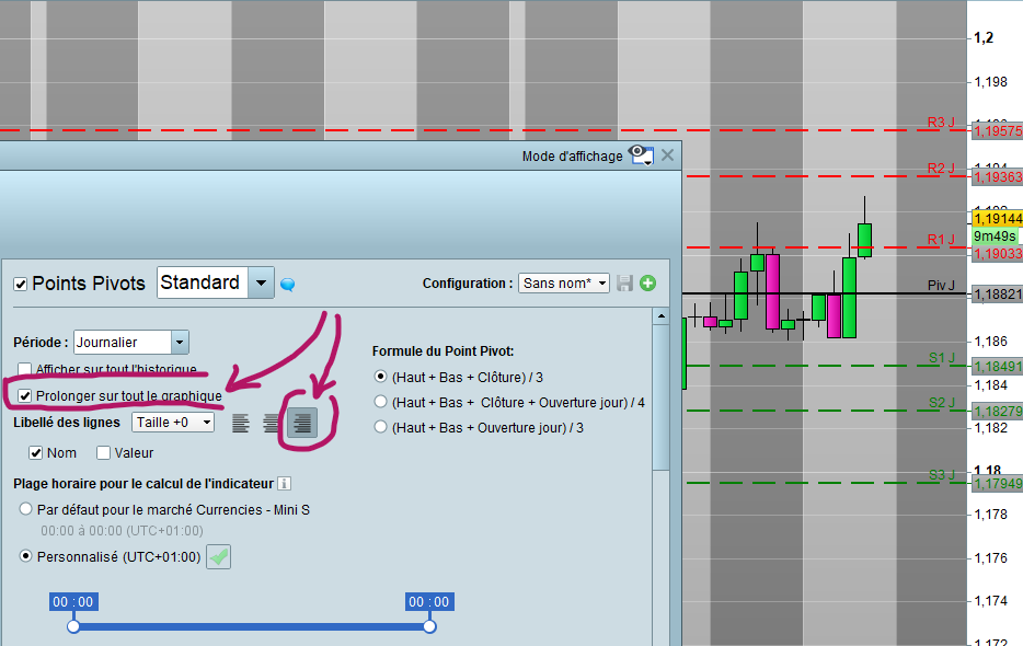 I have reduced the font to -2 and played around with the left indent, centre and right indent icons and the number of chart units but whatever I do it is always to close to the last candle or overlapping the last few candles. Why can’t the Pivot Lines be set hard on the far right of a chart and then I can use “amount of future in % of width” to get it not overlap?