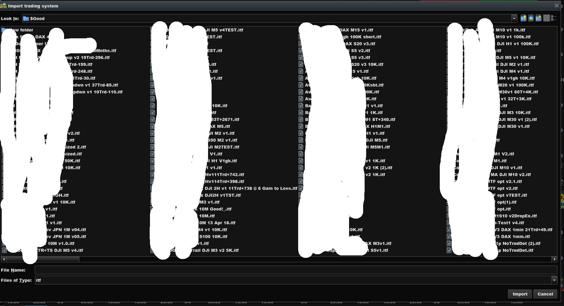 Mind you, this stuff starts to happen in all its severity once you have more than one strategy active on the same instrument, or when you try to deal with more than one instrument each with a strategy. Now envision one of these instruments (or both or more) with more than one strategy you are (back)testing. It is no less than a hell, and the shivers break out when all just was organized but the platform has to be restarted for one or the other reason (like doing it because you may else lose your edits – ahem !!)