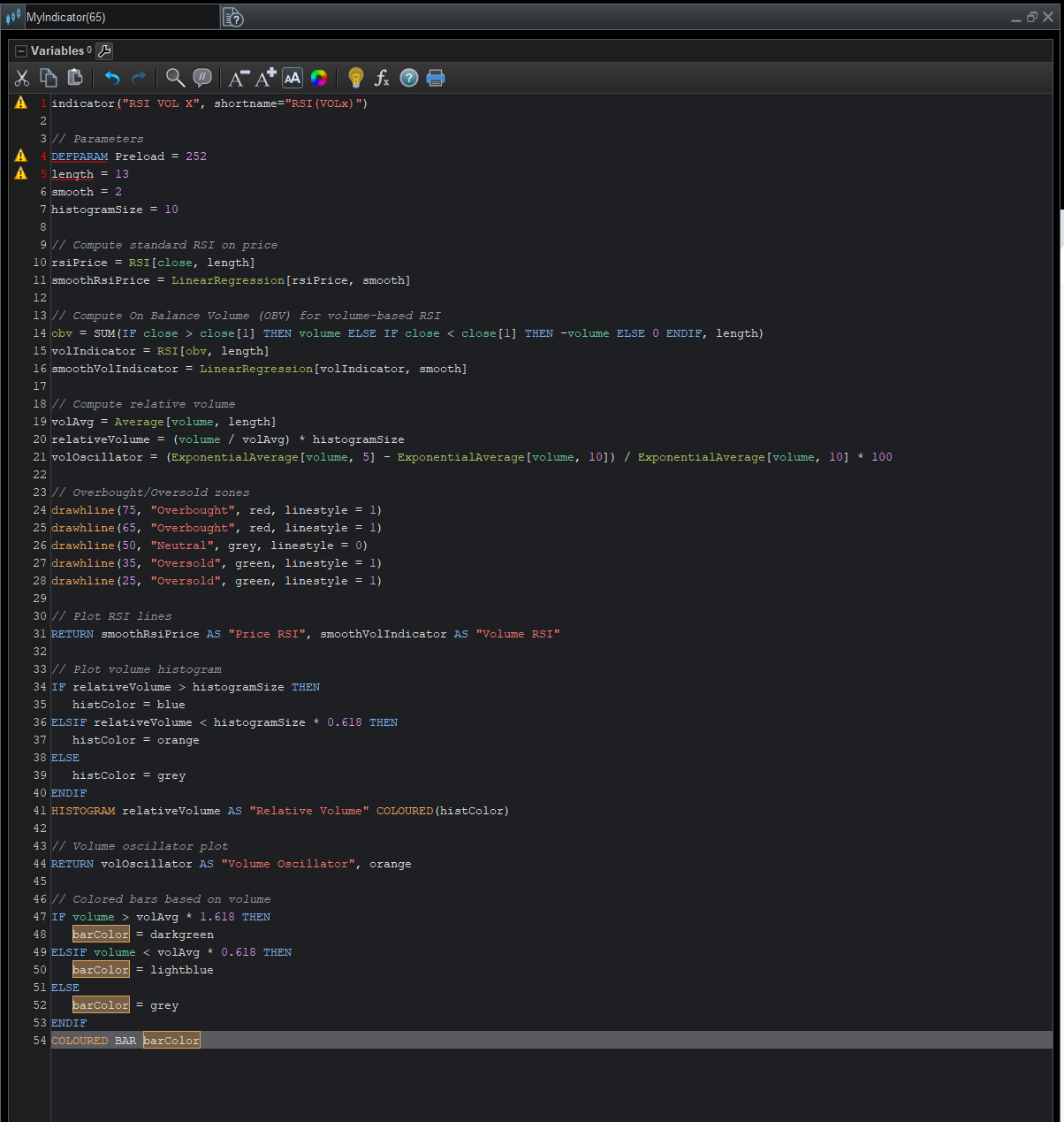 // Relative Strength application on Volume Indicators