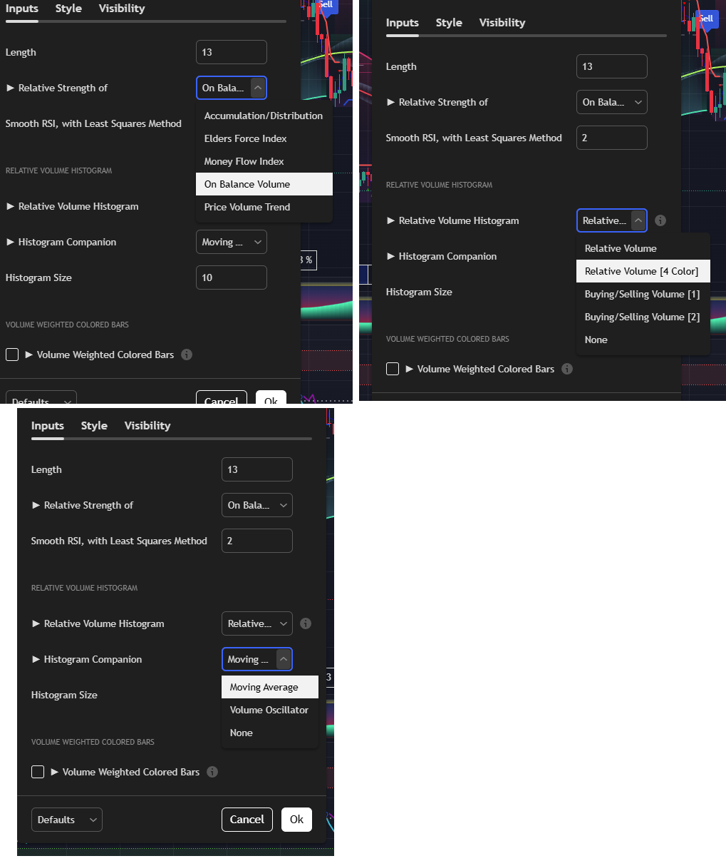 volHist = input.string('Relative Volume [4 Color]', '► Relative Volume Histogram', options=['Relative Volume', 'Relative Volume [4 Color]', 'Buying/Selling Volume [1]', 'Buying/Selling Volume [2]', 'None'], group = group_hist, tooltip = tp_rvol)