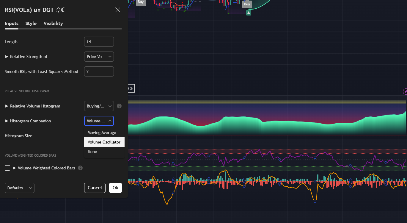 volComp = input.string('Volume Oscillator', '► Histogram Companion', options=['Moving Average', 'Volume Oscillator', 'None'], group = group_hist)