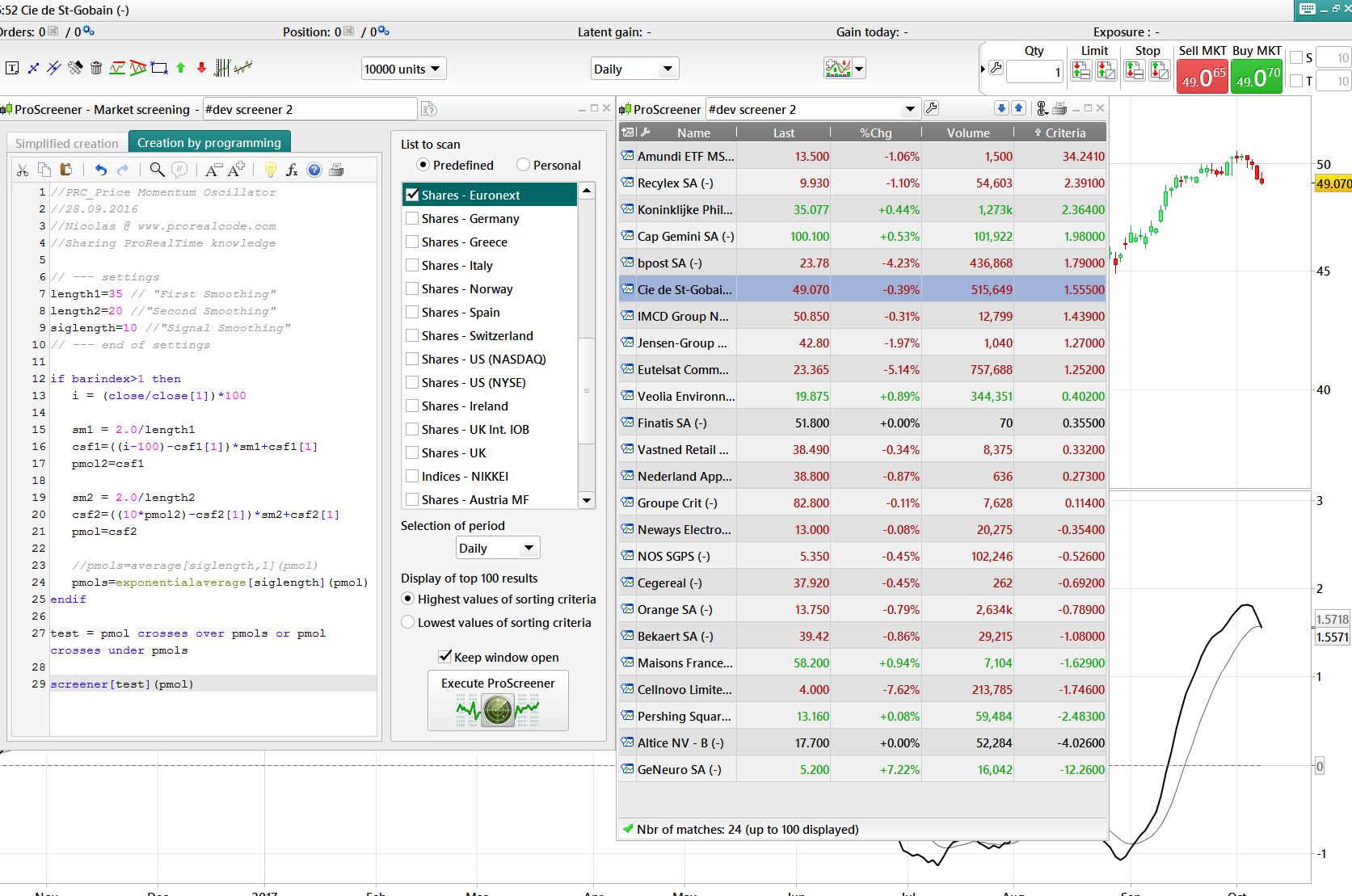 I have downloaded the PRT_Price Momentum Oscillator, and when I try to code a simple screener like Line Crosses Over PMO, it gives me an error “Internal server error” and is not the first time and the first indicator.