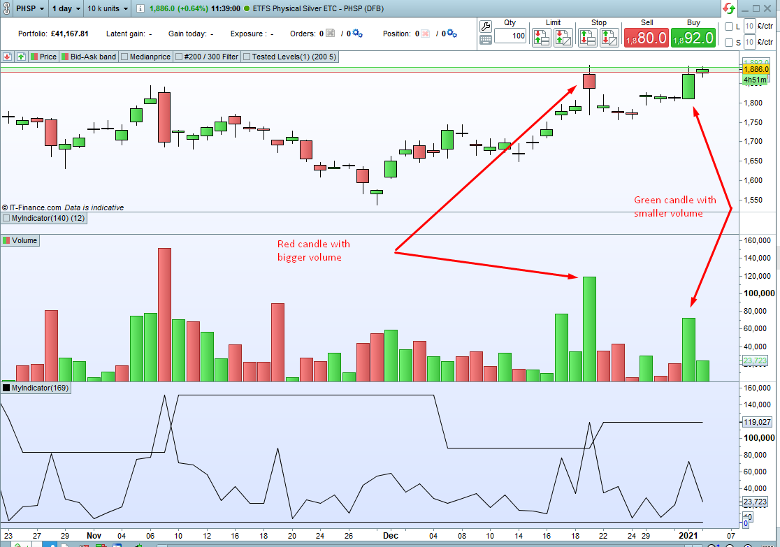 Good morning, once again thanks for your help with this. I used the exact code you helped me with (attached) but it doesn’t seem to work properly. i tested it on the ETF PHSP (LSE) and the indicator should have picked up that yesterday was an “up day” with volume greater than the previous 10 “down days” but sadly it didn’t. Yesterday was an up day (close higher than previous close) and volume of 72k when the highest volume of the last 10 down days was around 45.8k. Could you see where its going wrong please?