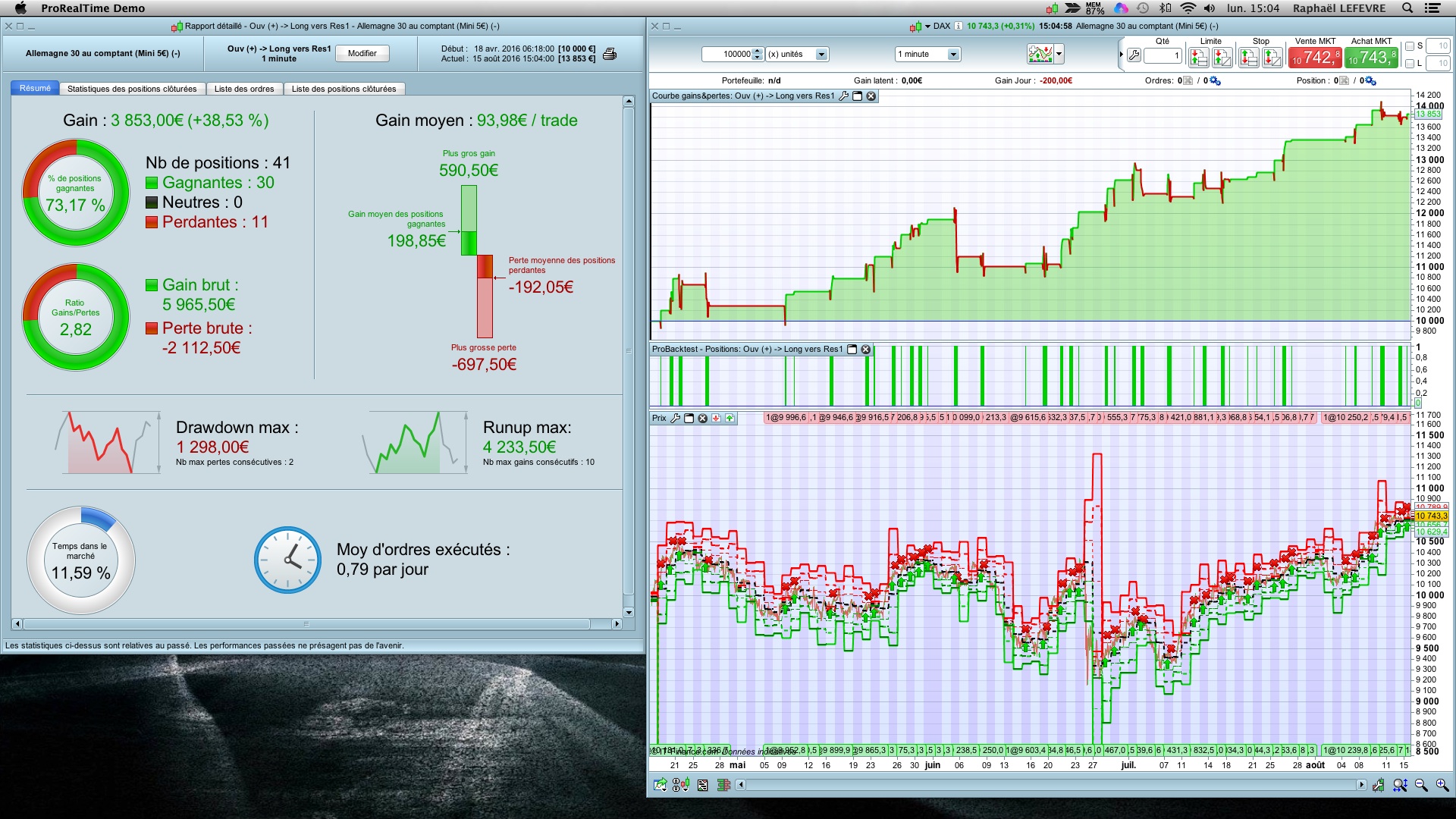 Certains des marchés cotant 24h/24h proposent l’option « Utiliser les cotations intraday pour construire les chandeliers journaliers ». Cette option n’est pas prise en compte par le ProBacktest, qui n’utilise que les chandeliers journaliers basés sur les horaires standard de marchés.
