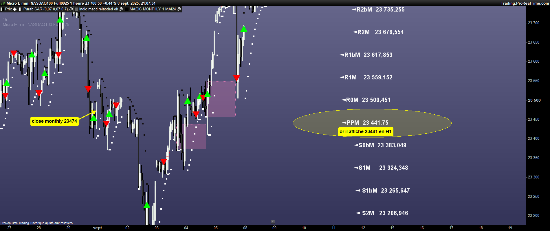 voici un code points camarilla avec extension de vagues d elliott. Mais en monthly sur une UT de H4 , il prend l’open de minuit le dernier jour du mois et non le veritable close à 22h sur NQ ES YM GOLD( decalage). Qui pourrait modifier ce code ? Merci