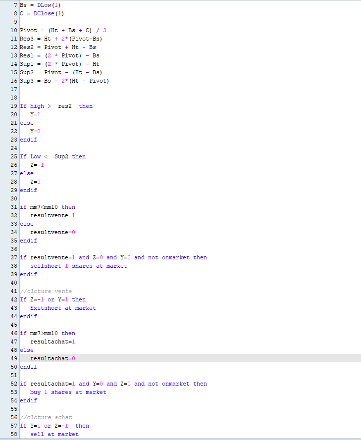 J’aimerai maintenant clôturer une position acheteuse si le high est > à Res3 ou clôturer une positon vendeuse si le low est < au Sup 3: