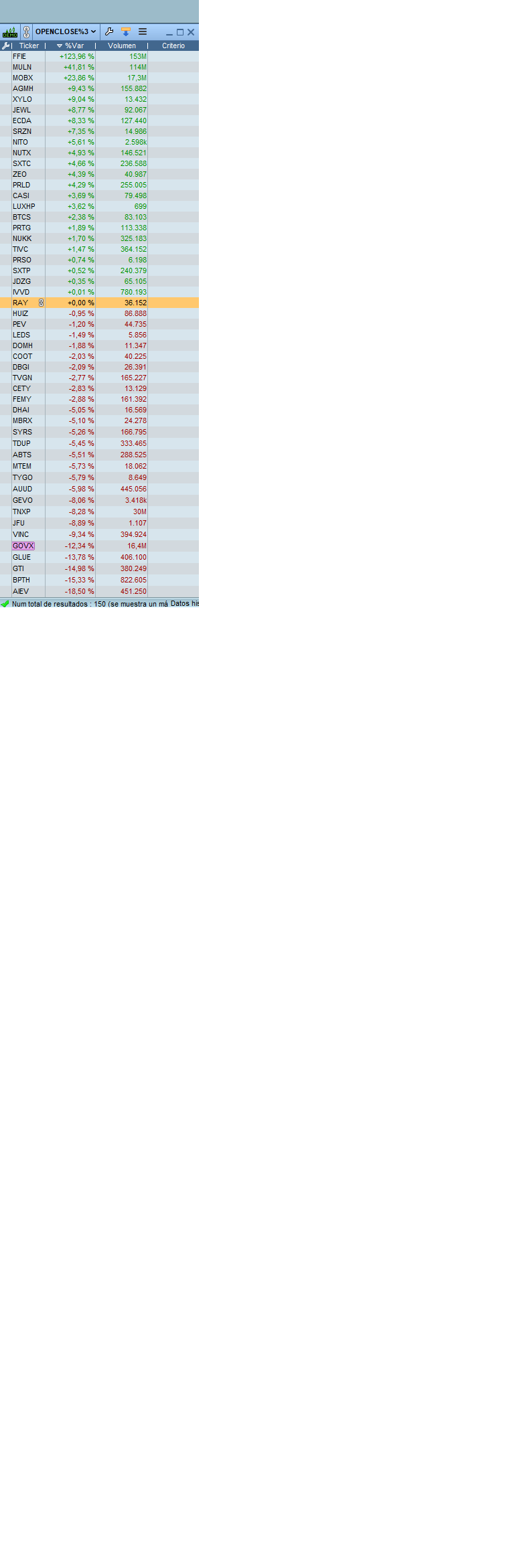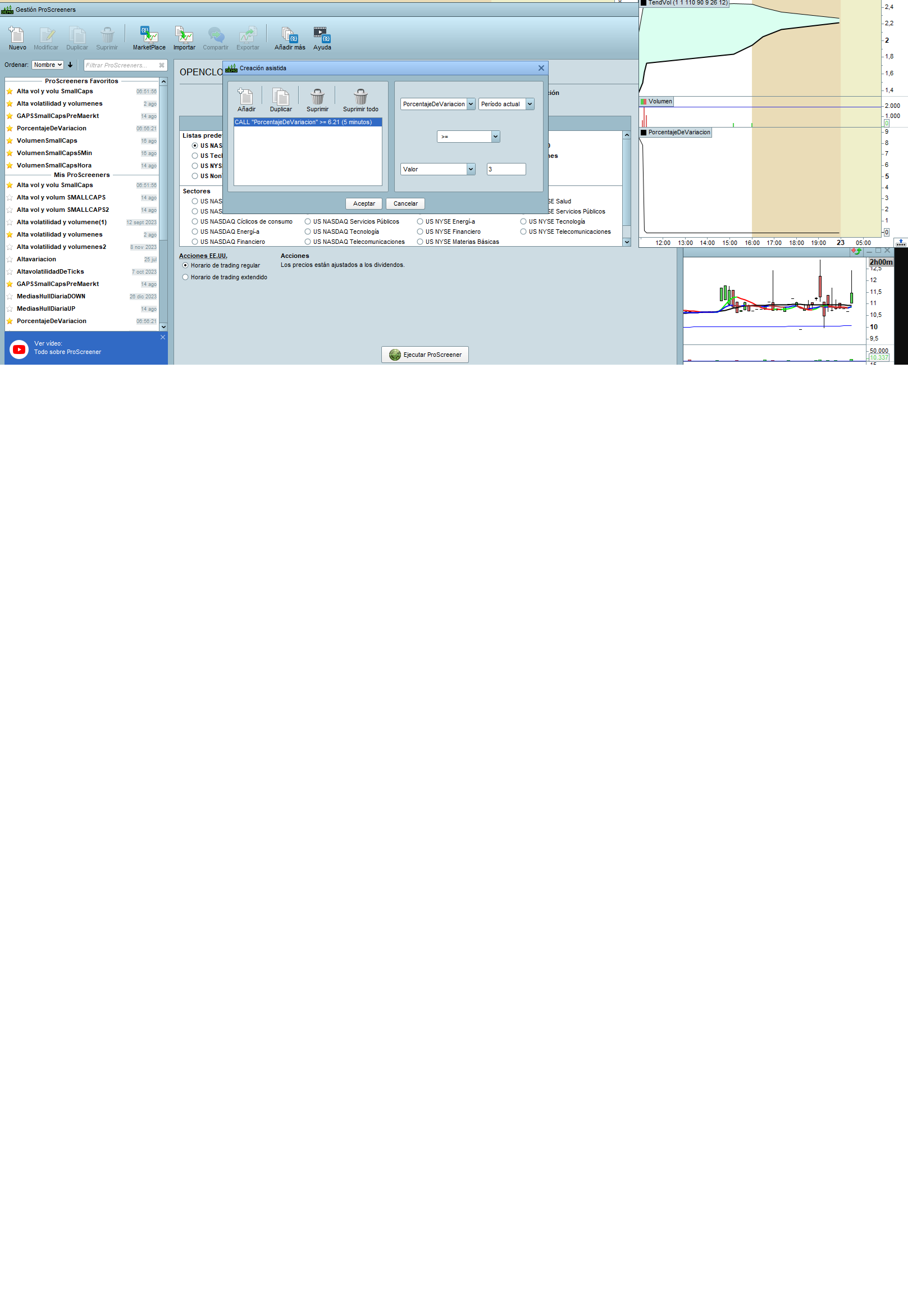 Una vez que tengo ese indicador, utilizo el valor de porcentaje en el screener donde intento sacar valores por encima del porcentaje deseado, en este caso 3%, en el screener, pero nunca me funciona bien:
