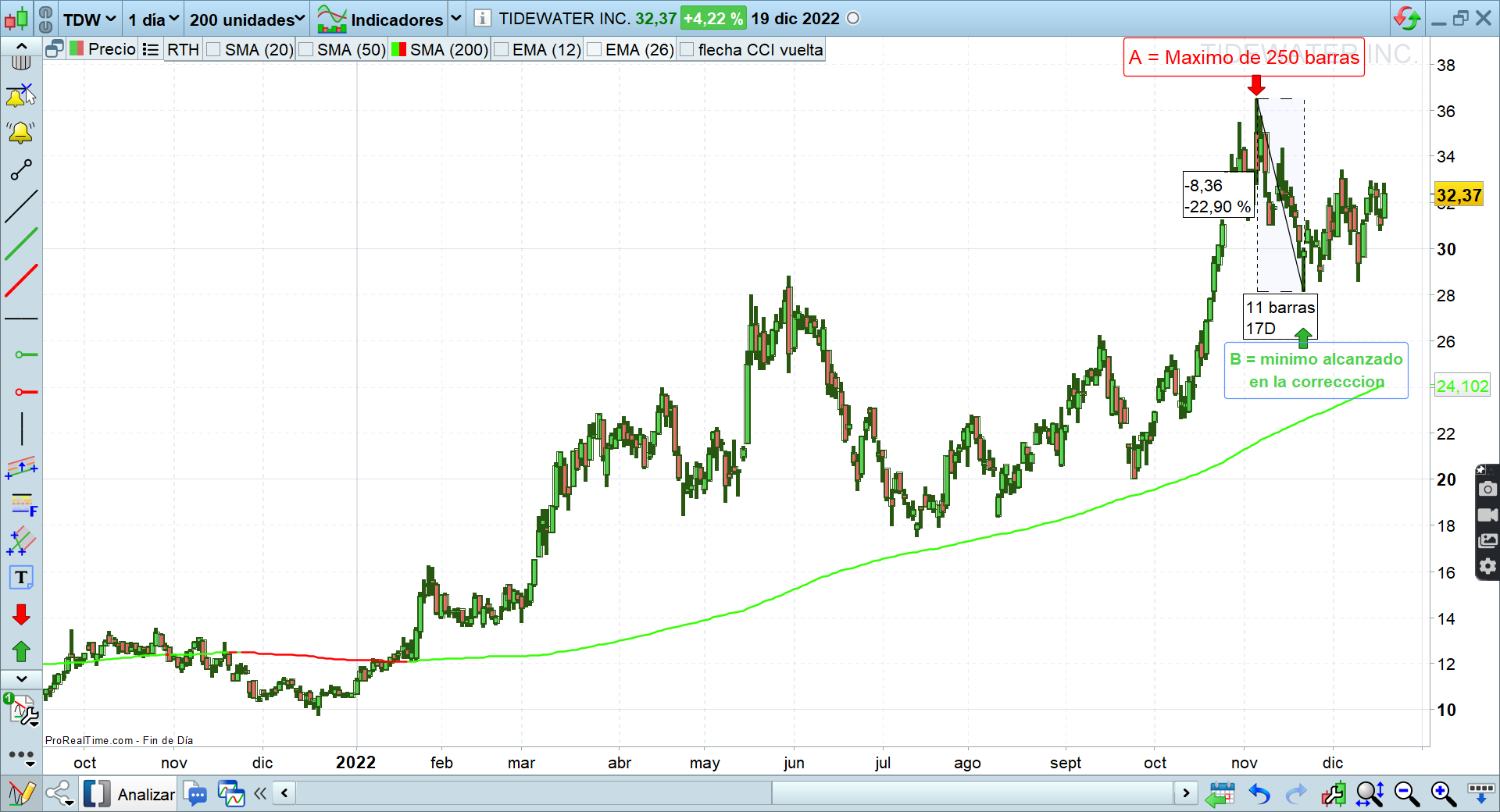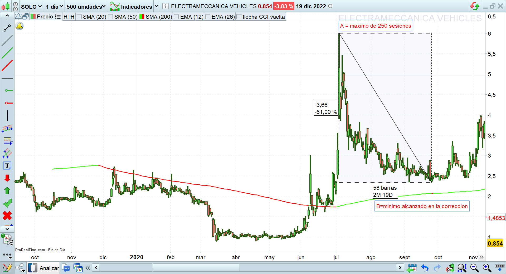 Roberto, adjunto un nuevo gráfico con datos actuales qué tal vez sea más útil ya que la anterior es de hace dos años. En este caso se observa que el porcentaje de corrección-retroceso es de -22,90%.