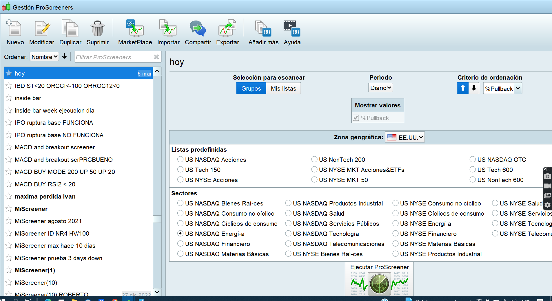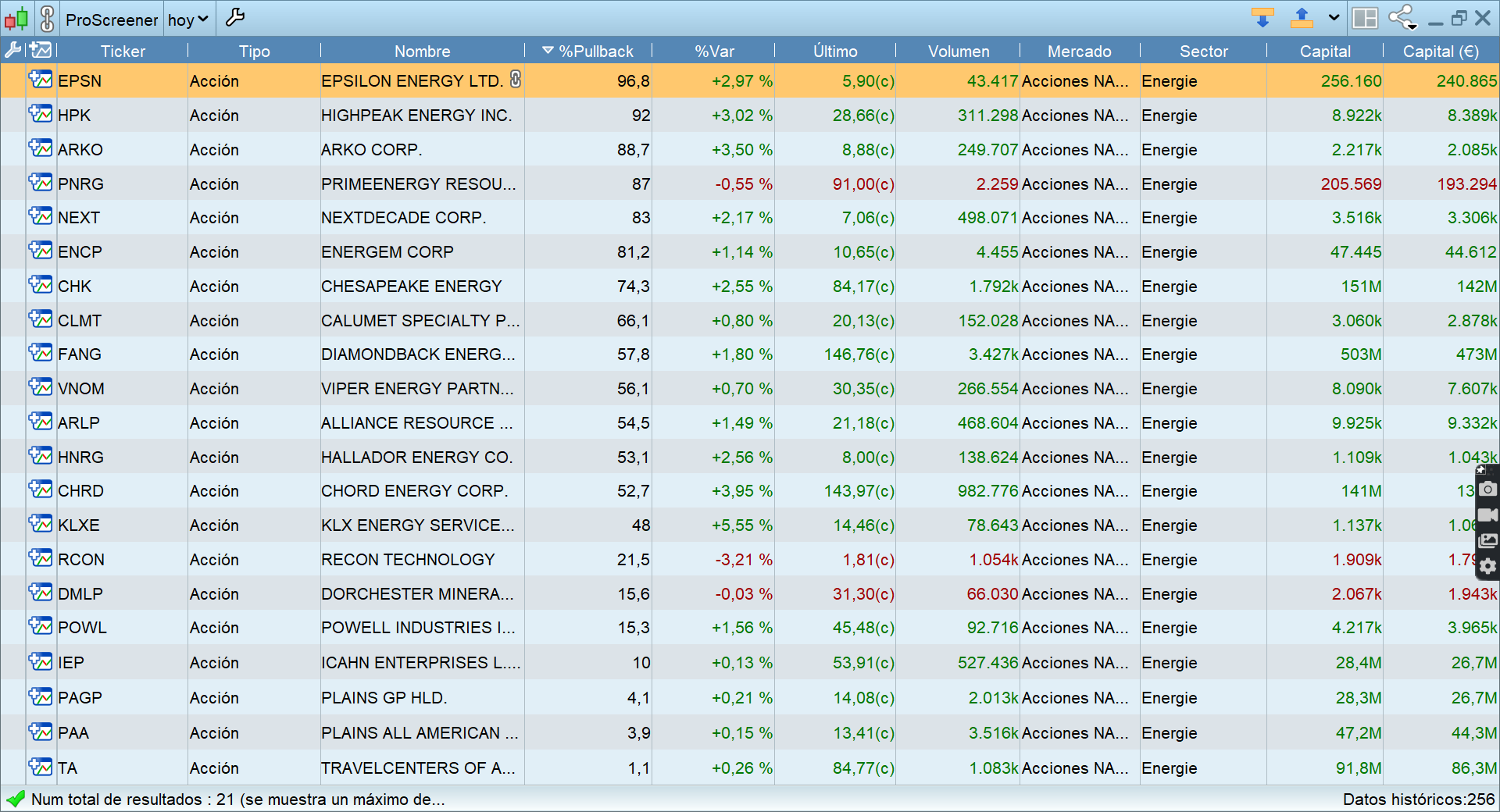 También quiero quiero añadir una condición que se me ha olvidado incluir en el primer mensaje y es que el máximo del día del cálculo del screener tiene que ser inferior al máximo de 250 sesiones es decir: