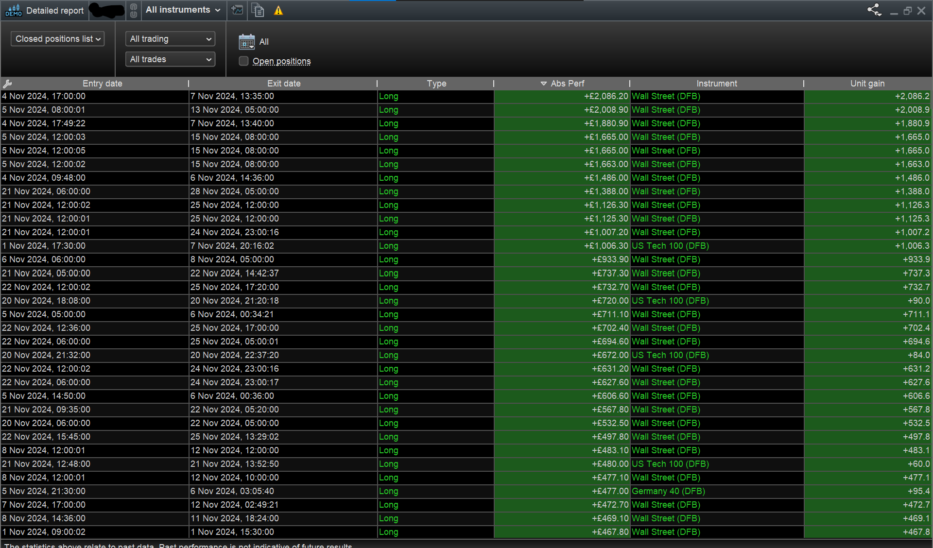 The Portfolio Detailed Report shows 10,000 past orders hence why the trade exit on 7 Nov 24 shows. When I go to Trading > Orders List, the Limit is 1,000 past orders so there is no way I can even see the trade exit on 7 Nov in order to find which System made me > £2k in one trade.