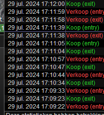 This is somewhat harder to make clear, but you will trust me that the two lines you see at n/a a few minutes earlier were filled with losses. This happened that day throughout.