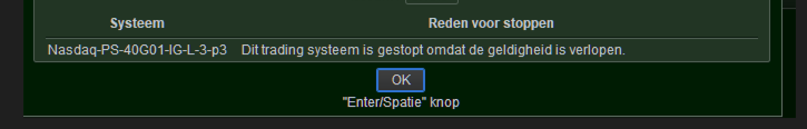 “This trading system has been stopped because the duration period has been reached” (similar).